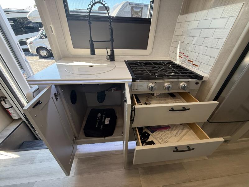 The standout feature of the 24TW is its rear twin bed layout, which can convert into a larger sleeping area when needed. This gives you flexibility whether you’re traveling solo, as a couple, or with guests.