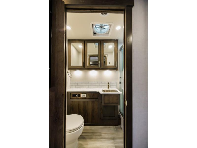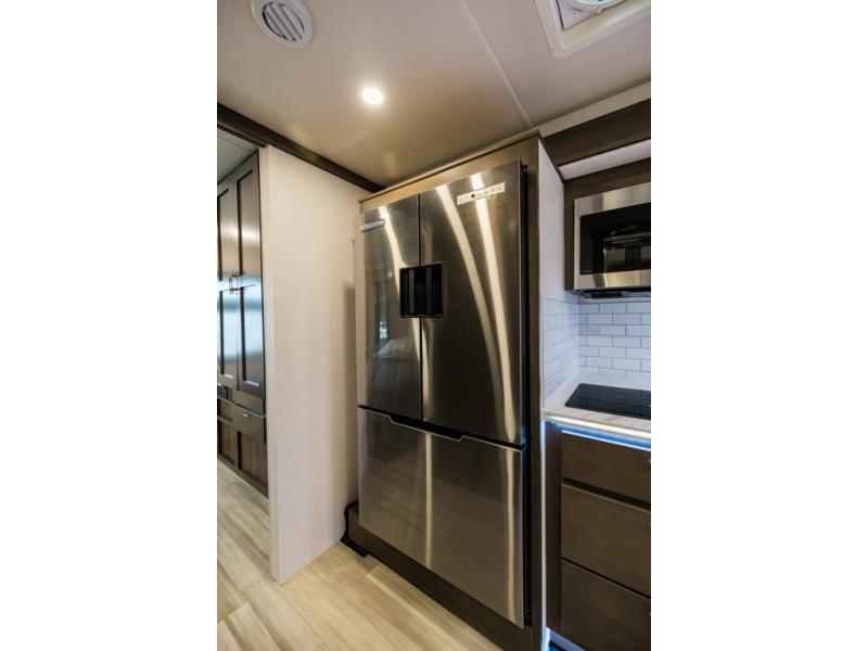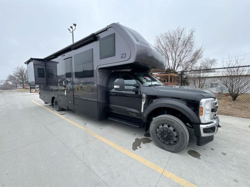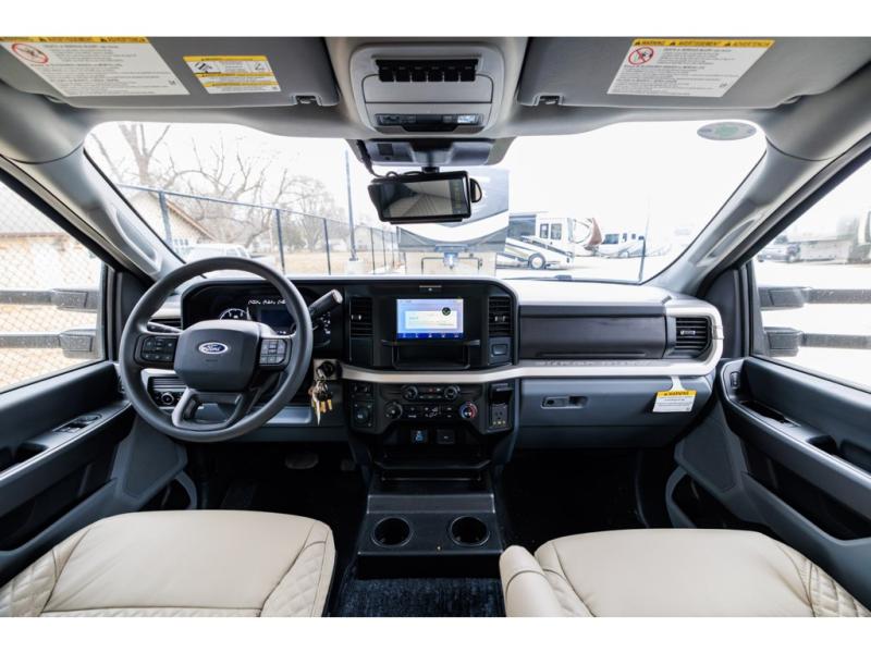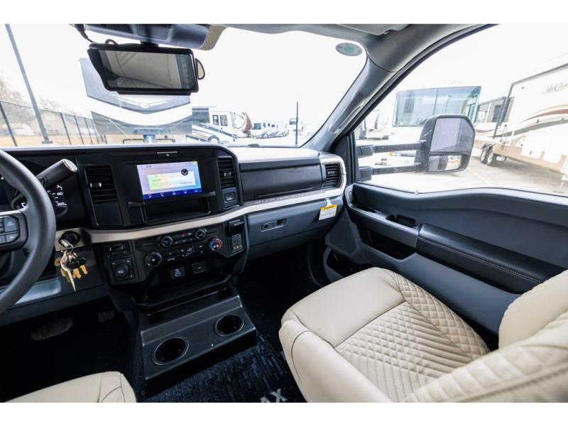 Get on the road again with the amazing Isata 6 Super C diesel motorhomes by Dynamax, built on the rugged Ford F600 XLT Chassis with factory 4-wheel drive. This powerhouse features a responsive TorqueShift 10-Speed Automatic Transmission and an advanced 8" touch screen dash radio with SYNC 4, offering seamless connectivity and entertainment on the go. The exterior boasts durable 2" aluminum-framed, laminated sidewalls with high-density block foam insulation, ensuring a comfortable and quiet ride. A keyless entry touch pad at the entry door provides secure and convenient entry. Inside, enjoy premium vinyl flooring throughout, perfect for withstanding the demands of travel. The interior design exudes warmth and sophistication, featuring exquisite hardwood shaker-style cabinetry and stunning solid surface countertops with LED edge lighting and a backsplash in the kitchen area.