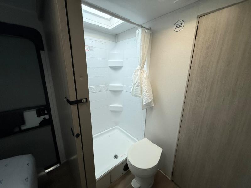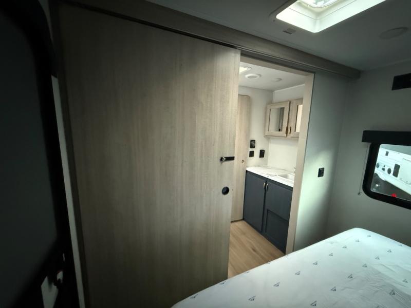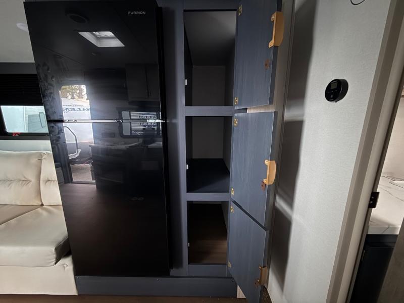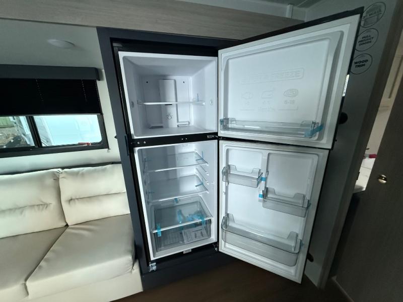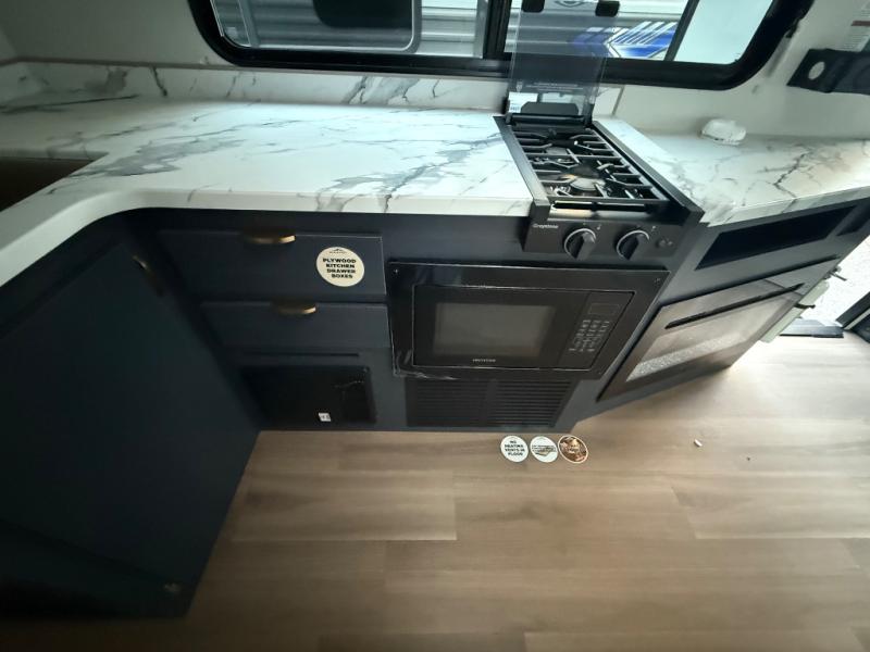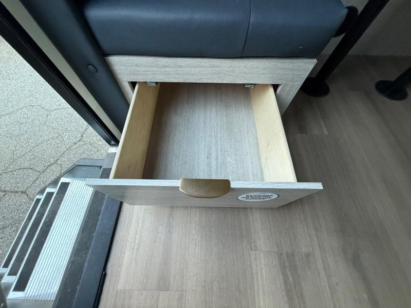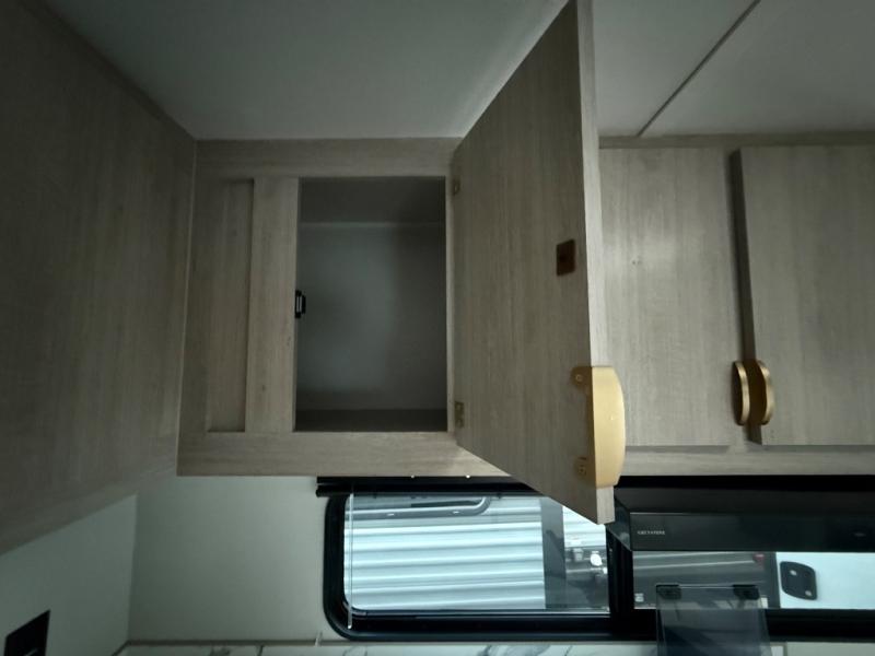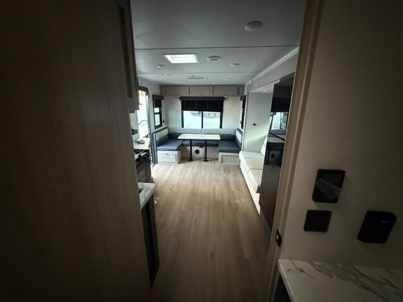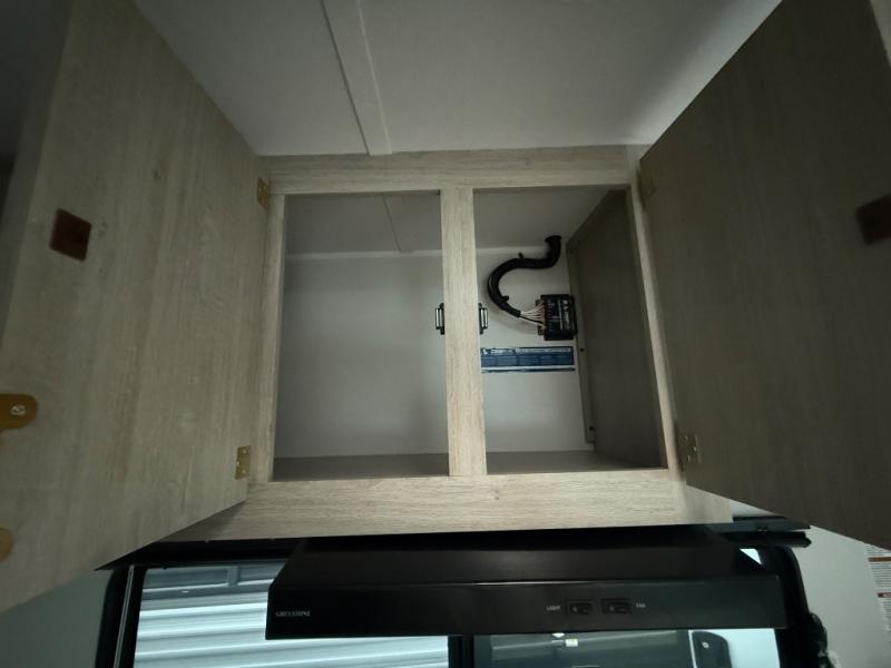 Gather around the U-shaped dinette, perfect for meals, games, or planning your next adventure. The jackknife sofa’s a comfy spot to lounge, binge-watch shows, or chill with the crew. The kitchen’s got you covered with a refrigerator to keep snacks chilled, a pantry for dry goods, plus a two-burner cooktop and microwave to prep meals. Plenty of overhead cabinets keep things tidy. Refresh and recharge in our convenient walk-through bathroom—no backtracking needed. Relax in the spacious front bedroom’s king bed, with ample wardrobes to stash your gear and handy nightstands for those midnight reads. Two entry doors allow for effortless flow in and out, perfect for grabbing gear or stretching your legs.