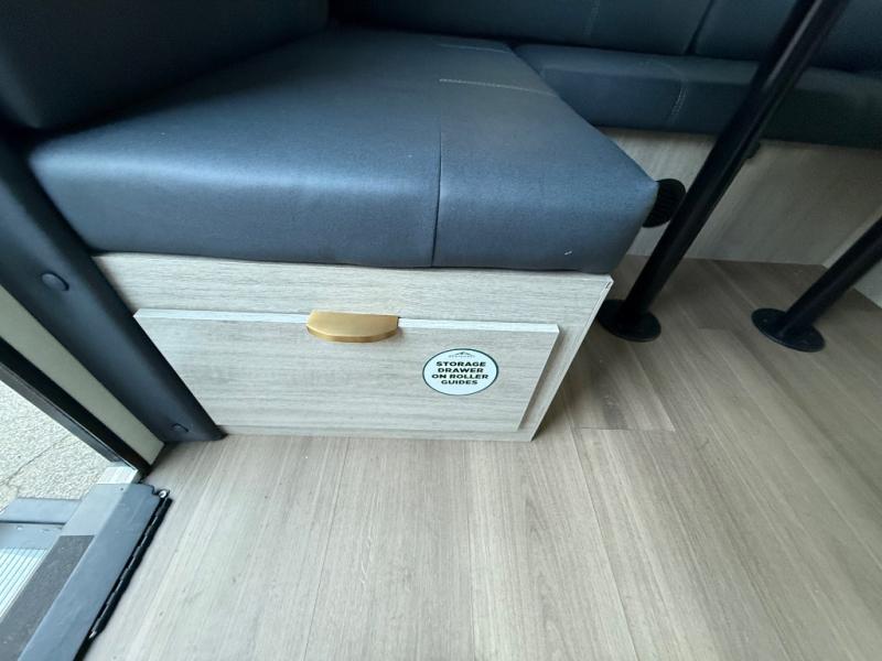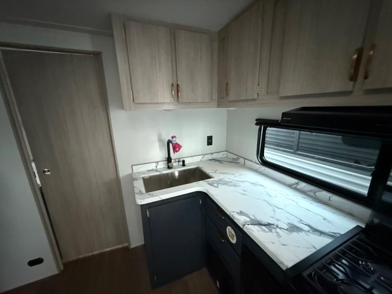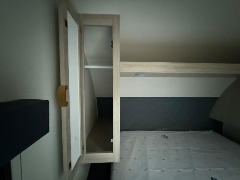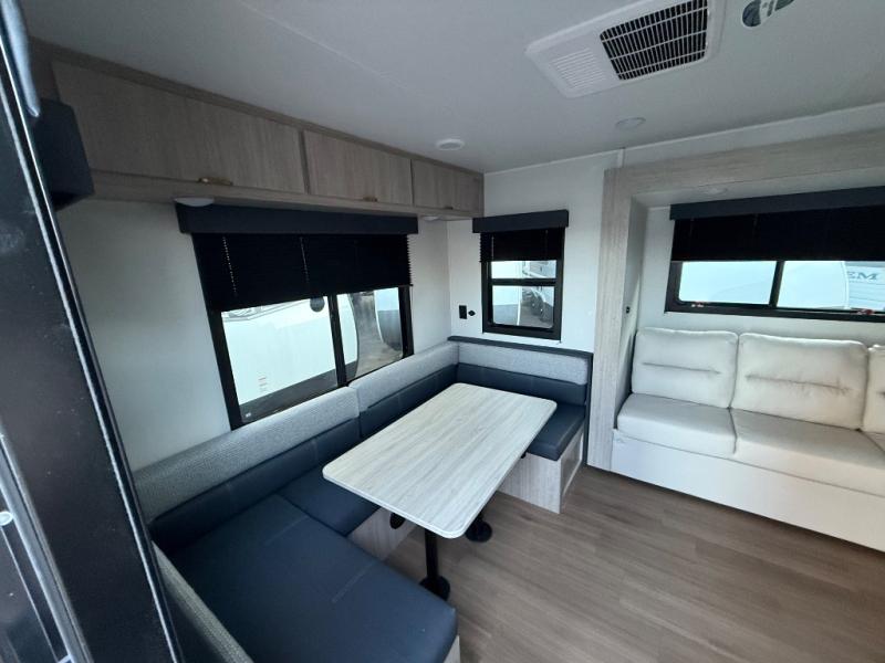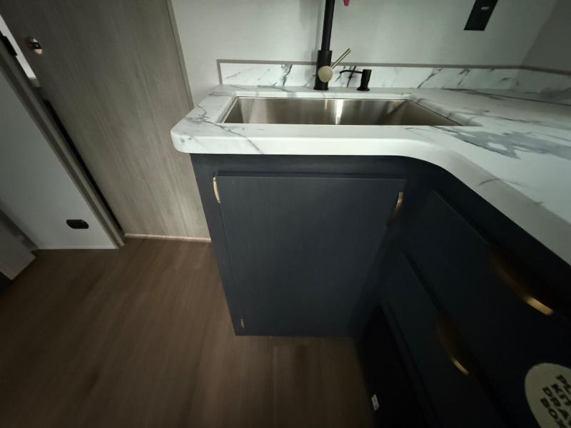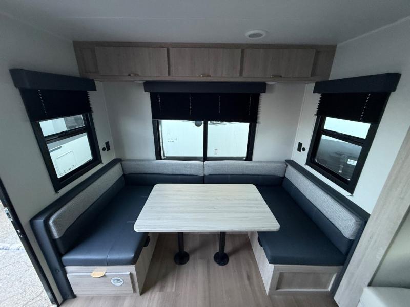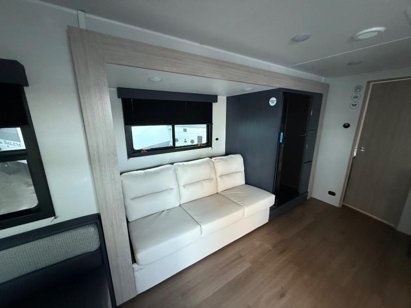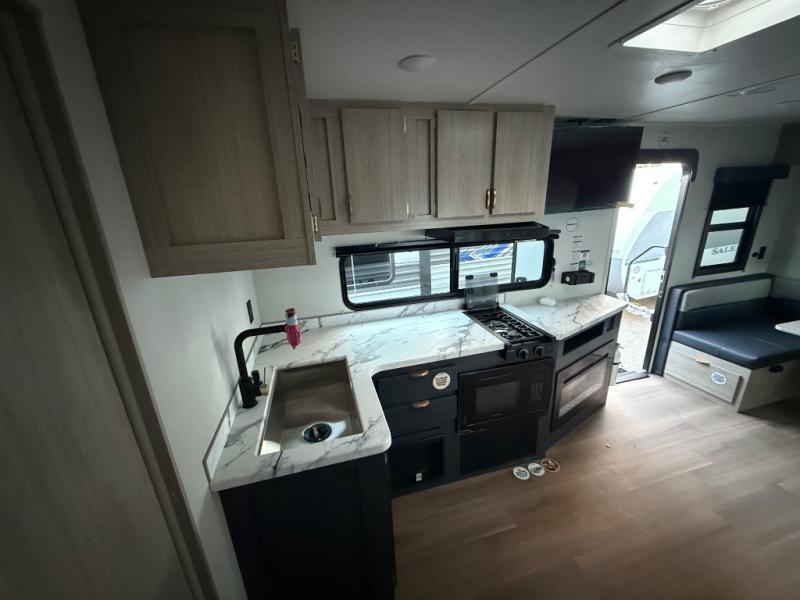 Gather around the U-shaped dinette, perfect for meals, games, or planning your next adventure. The jackknife sofa’s a comfy spot to lounge, binge-watch shows, or chill with the crew. The kitchen’s got you covered with a refrigerator to keep snacks chilled, a pantry for dry goods, plus a two-burner cooktop and microwave to prep meals. Plenty of overhead cabinets keep things tidy. Refresh and recharge in our convenient walk-through bathroom—no backtracking needed. Relax in the spacious front bedroom’s king bed, with ample wardrobes to stash your gear and handy nightstands for those midnight reads. Two entry doors allow for effortless flow in and out, perfect for grabbing gear or stretching your legs.