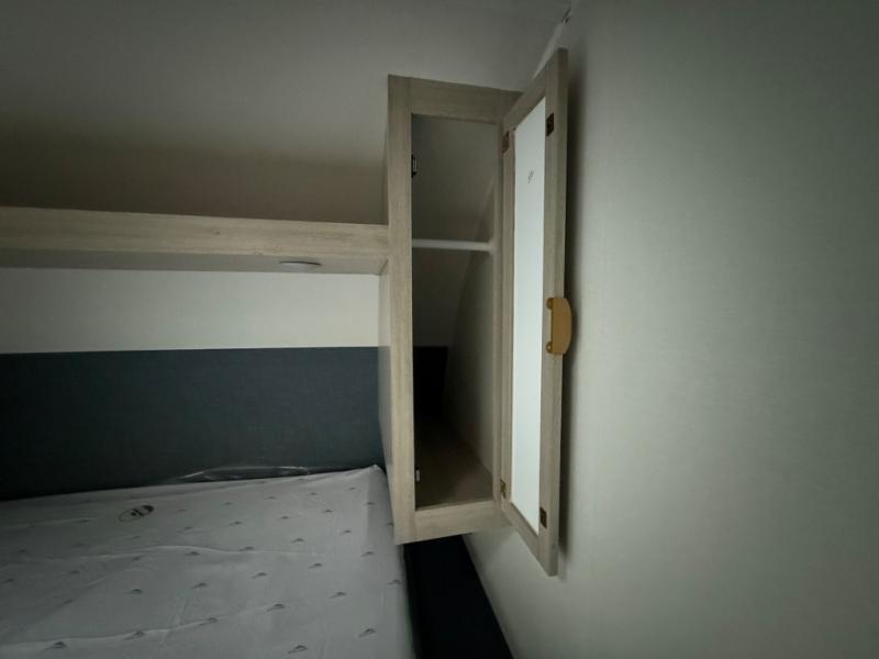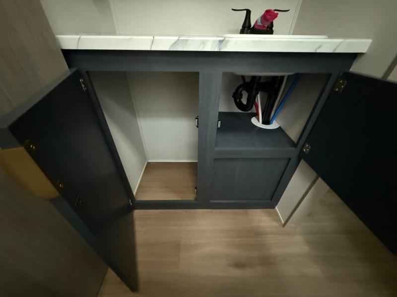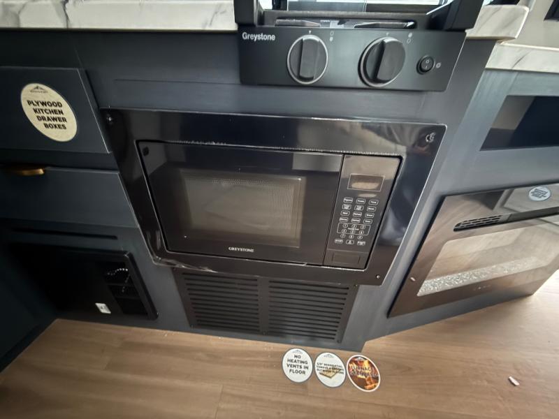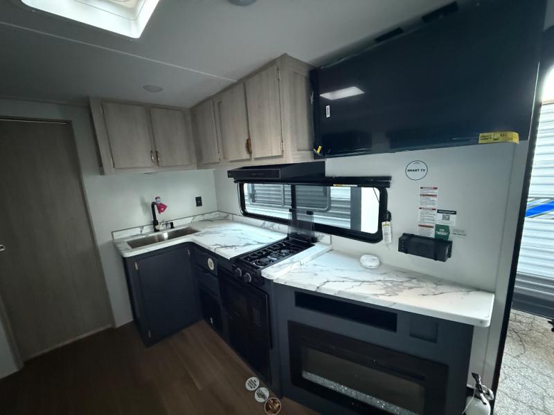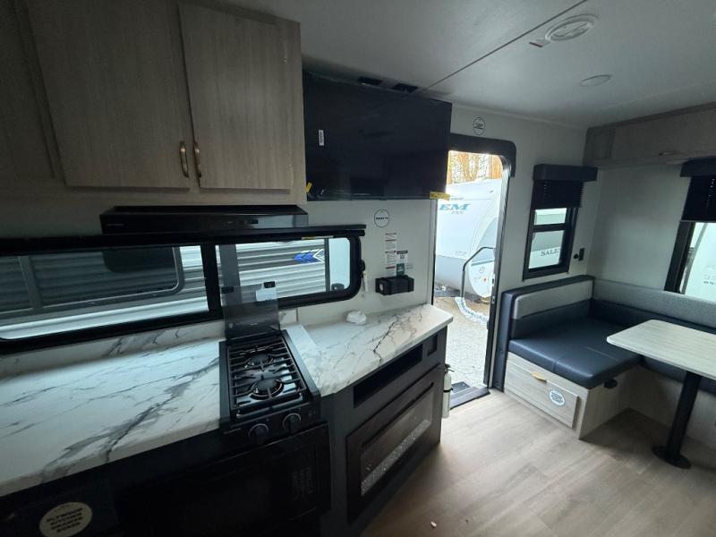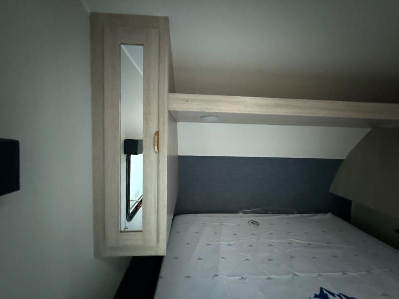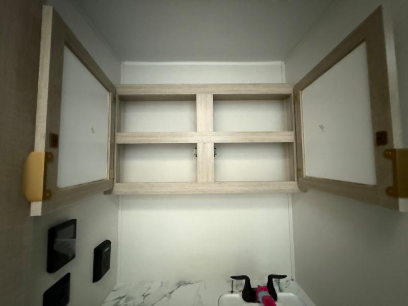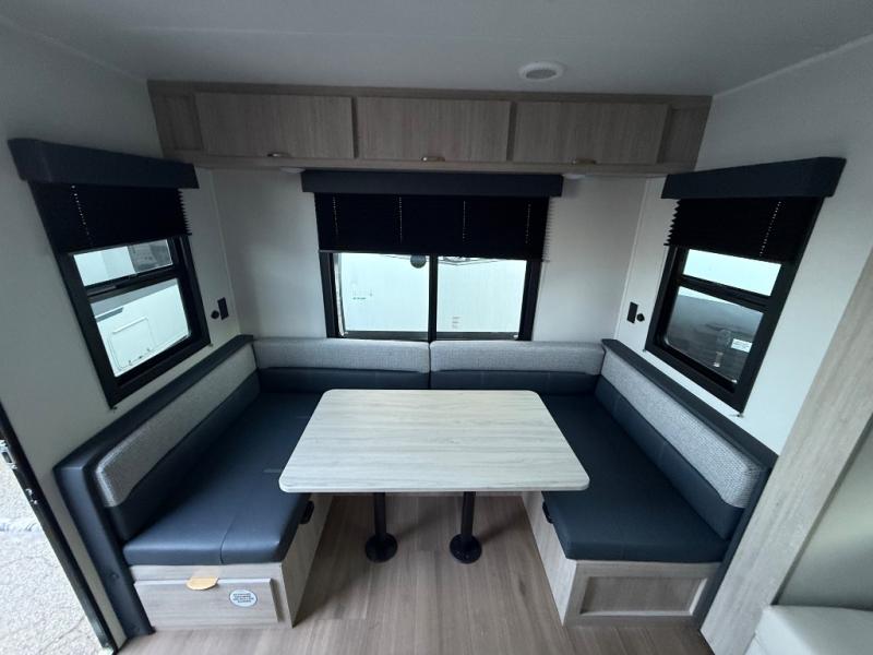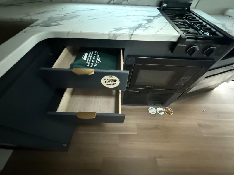 Gather around the U-shaped dinette, perfect for meals, games, or planning your next adventure. The jackknife sofa’s a comfy spot to lounge, binge-watch shows, or chill with the crew. The kitchen’s got you covered with a refrigerator to keep snacks chilled, a pantry for dry goods, plus a two-burner cooktop and microwave to prep meals. Plenty of overhead cabinets keep things tidy. Refresh and recharge in our convenient walk-through bathroom—no backtracking needed. Relax in the spacious front bedroom’s king bed, with ample wardrobes to stash your gear and handy nightstands for those midnight reads. Two entry doors allow for effortless flow in and out, perfect for grabbing gear or stretching your legs.