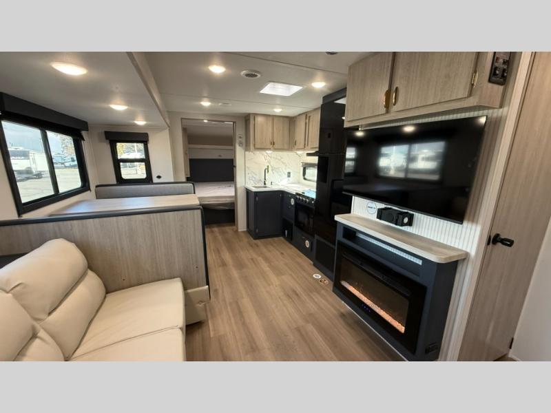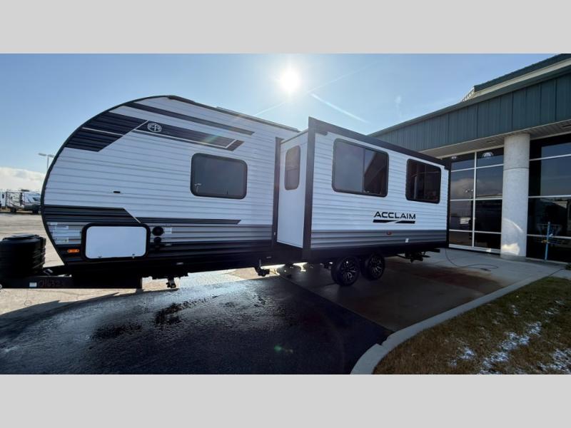 EAST TO WEST Acclaim travel trailers feature an enclosed and heated underbelly, ensuring a cozy and dry space no matter the weather. The 81" interior ceiling height throughout provides ample space to move around, while our residential-inspired kitchen and living spaces make you feel right at home. Our tankless on-demand water heater provides endless hot water, while the power awning with adjustable legs offers the perfect outdoor retreat. The LP quick connect for outdoor grill makes it easy to cook up a storm, whether you're parked in the mountains or by the lake. Plus, with a 7-way plug and chain holder, you'll be ready to hook up and go. We know that pets are part of the family, which is why our trailers are designed with pet-friendly features like D-Ring tie-downs and a pet-friendly layout.
