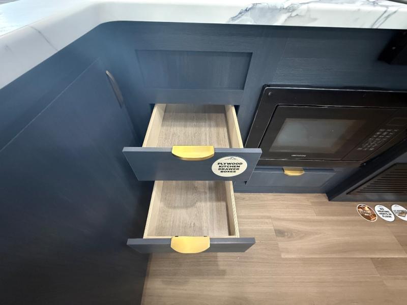 EAST TO WEST Acclaim travel trailers feature an enclosed and heated underbelly, ensuring a cozy and dry space no matter the weather. The 81" interior ceiling height throughout provides ample space to move around, while our residential-inspired kitchen and living spaces make you feel right at home. Our tankless on-demand water heater provides endless hot water, while the power awning with adjustable legs offers the perfect outdoor retreat. The LP quick connect for outdoor grill makes it easy to cook up a storm, whether you're parked in the mountains or by the lake. Plus, with a 7-way plug and chain holder, you'll be ready to hook up and go. We know that pets are part of the family, which is why our trailers are designed with pet-friendly features like D-Ring tie-downs and a pet-friendly layout.