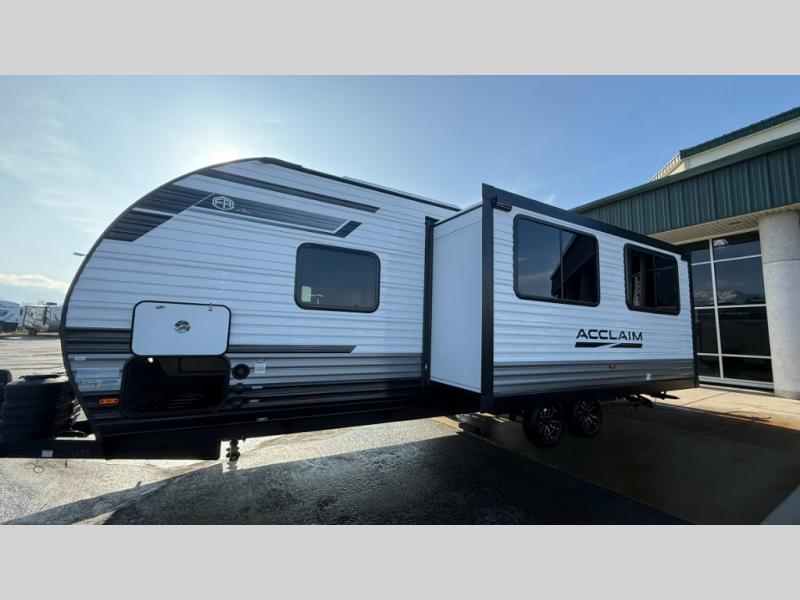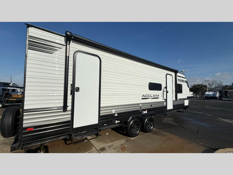 EAST TO WEST Acclaim travel trailers feature an enclosed and heated underbelly, ensuring a cozy and dry space no matter the weather. The 81" interior ceiling height throughout provides ample space to move around, while our residential-inspired kitchen and living spaces make you feel right at home. Our tankless on-demand water heater provides endless hot water, while the power awning with adjustable legs offers the perfect outdoor retreat. The LP quick connect for outdoor grill makes it easy to cook up a storm, whether you're parked in the mountains or by the lake. Plus, with a 7-way plug and chain holder, you'll be ready to hook up and go. We know that pets are part of the family, which is why our trailers are designed with pet-friendly features like D-Ring tie-downs and a pet-friendly layout.