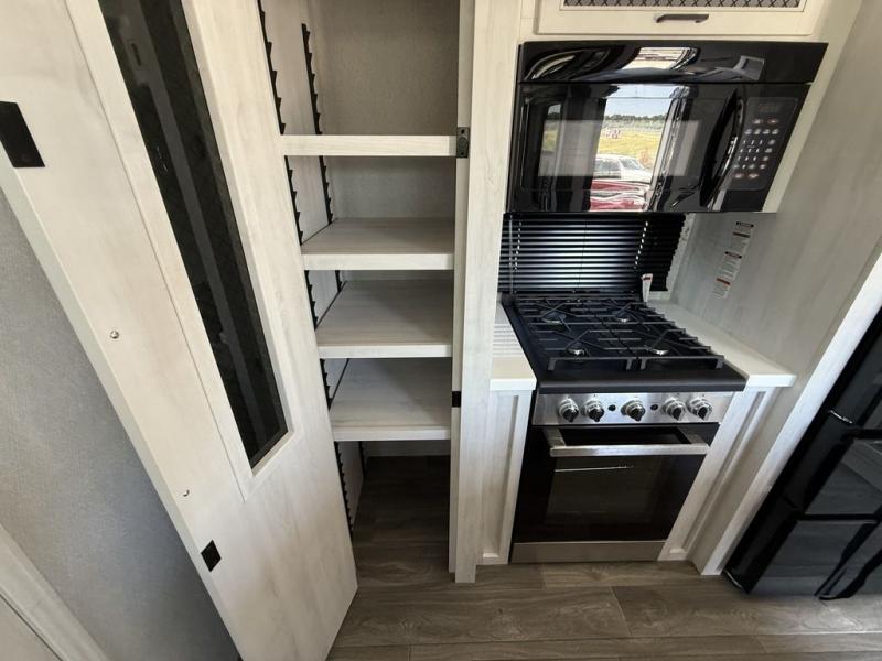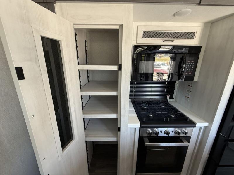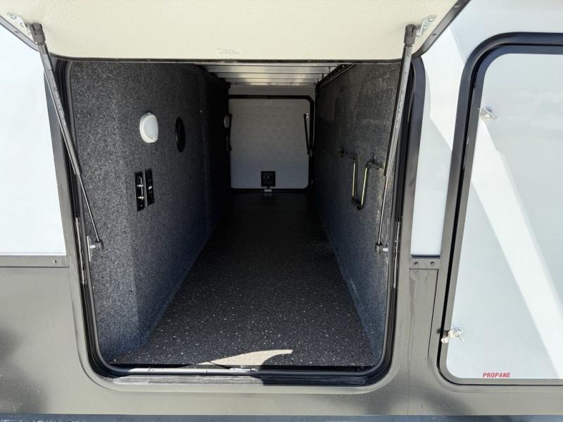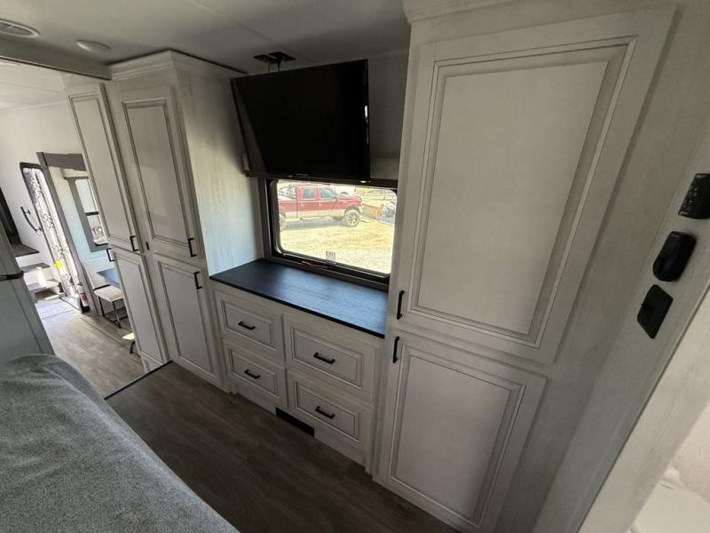 There is just too much luxury to name on the EAST TO WEST Ahara fifth wheel! These units are quite impressive, and once you see them, you'll know what we mean. The Ahara first grabs your attention with its fully painted aerodynamic fiberglass front cap, 102" wide-body chassis, and deep tint square frameless windows. For towing, you'll find a MORryde CRE 3000 suspension, LED marker lights, LED taillights with back-up lights, and rear view camera prep. Traveling in different climates is also made easy with the high-efficiency triple A/C system, 40,000 BTU high-capacity furnace, plus heated, insulated, and enclosed underbelly found within the Climate Package. Head inside to enjoy Slow Rise roller shades, a flush floor kitchen slide to help prevent trips, and solid surface countertops in the kitchen and bath to name a few luxuries!