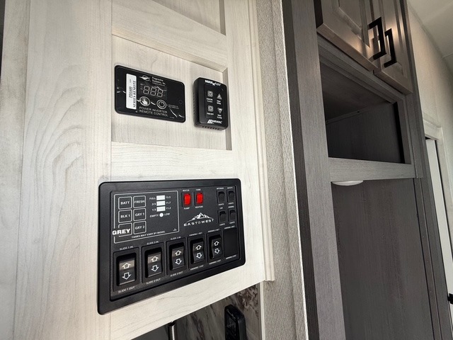 There is just too much luxury to name on the EAST TO WEST Ahara fifth wheel! These units are quite impressive, and once you see them, you'll know what we mean. The Ahara first grabs your attention with its fully painted aerodynamic fiberglass front cap, 102" wide-body chassis, and deep tint square frameless windows. For towing, you'll find a MORryde CRE 3000 suspension, LED marker lights, LED taillights with back-up lights, and rear view camera prep. Traveling in different climates is also made easy with the high-efficiency triple A/C system, 40,000 BTU high-capacity furnace, plus heated, insulated, and enclosed underbelly found within the Climate Package. Head inside to enjoy Slow Rise roller shades, a flush floor kitchen slide to help prevent trips, and solid surface countertops in the kitchen and bath to name a few luxuries!