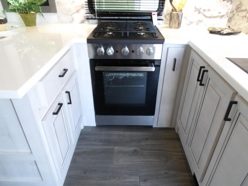 There is just too much luxury to name on the EAST TO WEST Ahara fifth wheel! These units are quite impressive, and once you see them, you'll know what we mean. The Ahara first grabs your attention with its fully painted aerodynamic fiberglass front cap, 102" wide-body chassis, and deep tint square frameless windows. For towing, you'll find a MORryde CRE 3000 suspension, LED marker lights, LED taillights with back-up lights, and rear view camera prep. Traveling in different climates is also made easy with the high-efficiency triple A/C system, 40,000 BTU high-capacity furnace, plus heated, insulated, and enclosed underbelly found within the Climate Package. Head inside to enjoy Slow Rise roller shades, a flush floor kitchen slide to help prevent trips, and solid surface countertops in the kitchen and bath to name a few luxuries!