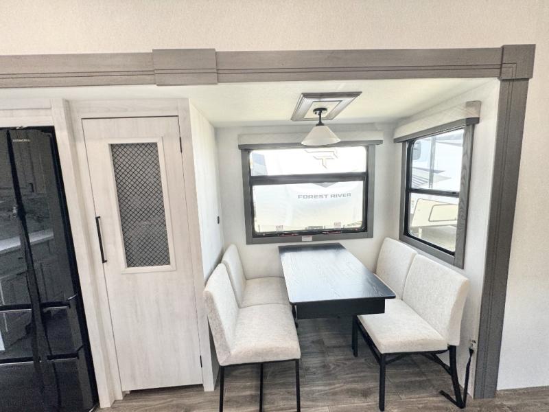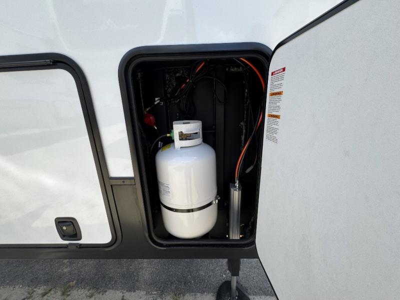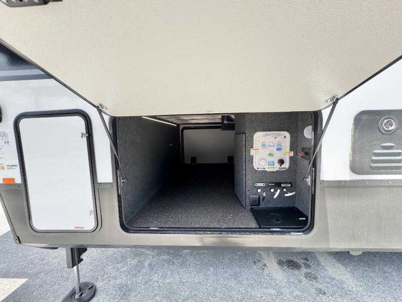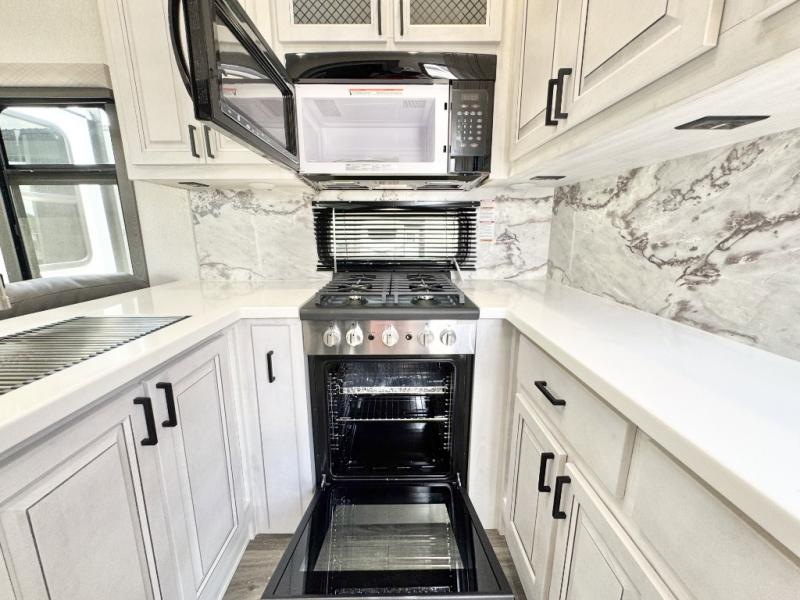 There is just too much luxury to name on the EAST TO WEST Ahara fifth wheel! These units are quite impressive, and once you see them, you'll know what we mean. The Ahara first grabs your attention with its hi-gloss gel-coated fiberglass exterior which showcases two power awnings with LED lights, an LP quick connect, an exterior cable/satellite hookup, and a universal all-in-one docking station. For towing, you'll find a MORryde CRE 3000 suspension, Dexter Gladiator thick-wall 7,000-LB axles with Nev-R-Adjust brakes, and preparations for a rearview camera. Traveling during all seasons is also made easy with the high-efficiency triple A/C system, a 40,000 BTU high-capacity furnace, a heated, insulated, and enclosed underbelly and dump valves with circulating heat, and Radiant Technology Composites insulation in the roof, front cap, and underbelly.
