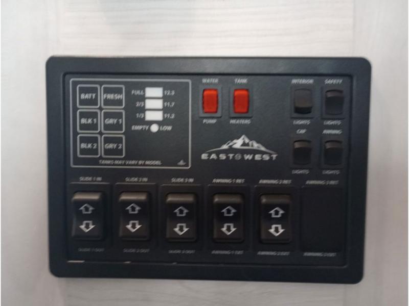 There is just too much luxury to name on the EAST TO WEST Ahara fifth wheel! These units are quite impressive, and once you see them, you'll know what we mean. The Ahara first grabs your attention with its fully painted aerodynamic fiberglass front cap, 102" wide-body chassis, and deep tint square frameless windows. For towing, you'll find a MORryde CRE 3000 suspension, LED marker lights, LED taillights with back-up lights, and rear view camera prep. Traveling in different climates is also made easy with the high-efficiency triple A/C system, 40,000 BTU high-capacity furnace, plus heated, insulated, and enclosed underbelly found within the Climate Package. Head inside to enjoy Slow Rise roller shades, a flush floor kitchen slide to help prevent trips, and solid surface countertops in the kitchen and bath to name a few luxuries!