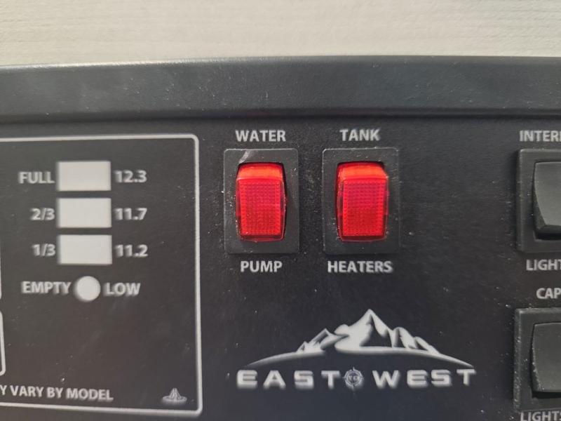 There is just too much luxury to name on the EAST TO WEST Ahara fifth wheel! These units are quite impressive, and once you see them, you'll know what we mean. The Ahara first grabs your attention with its fully painted aerodynamic fiberglass front cap, 102" wide-body chassis, and deep tint square frameless windows. For towing, you'll find a MORryde CRE 3000 suspension, LED marker lights, LED taillights with back-up lights, and rear view camera prep. Traveling in different climates is also made easy with the high-efficiency triple A/C system, 40,000 BTU high-capacity furnace, plus heated, insulated, and enclosed underbelly found within the Climate Package. Head inside to enjoy Slow Rise roller shades, a flush floor kitchen slide to help prevent trips, and solid surface countertops in the kitchen and bath to name a few luxuries!