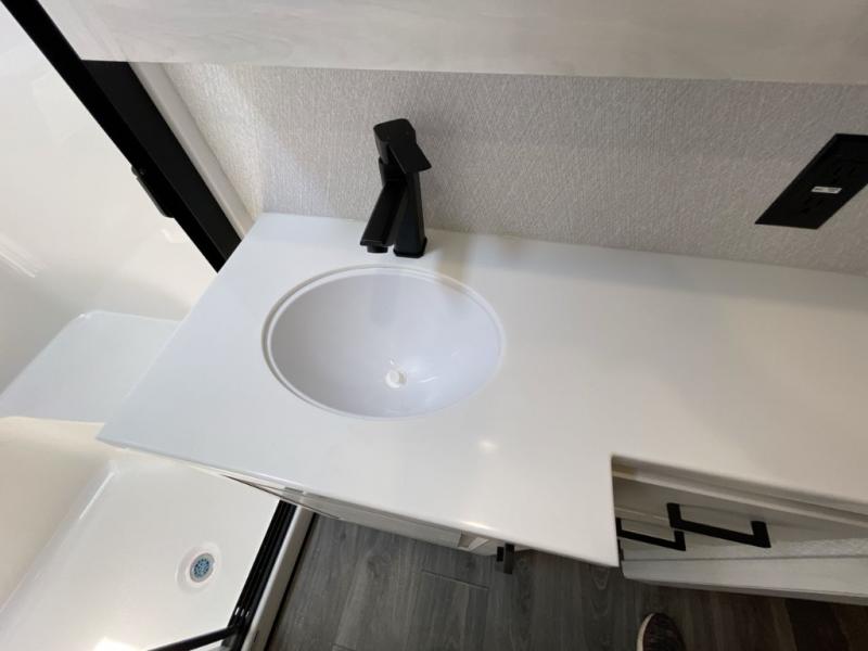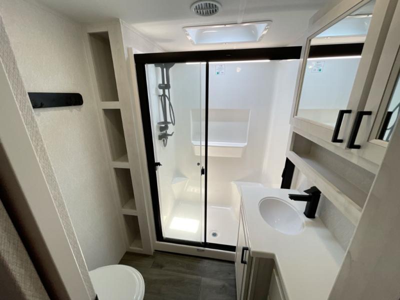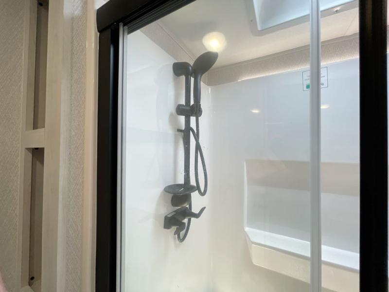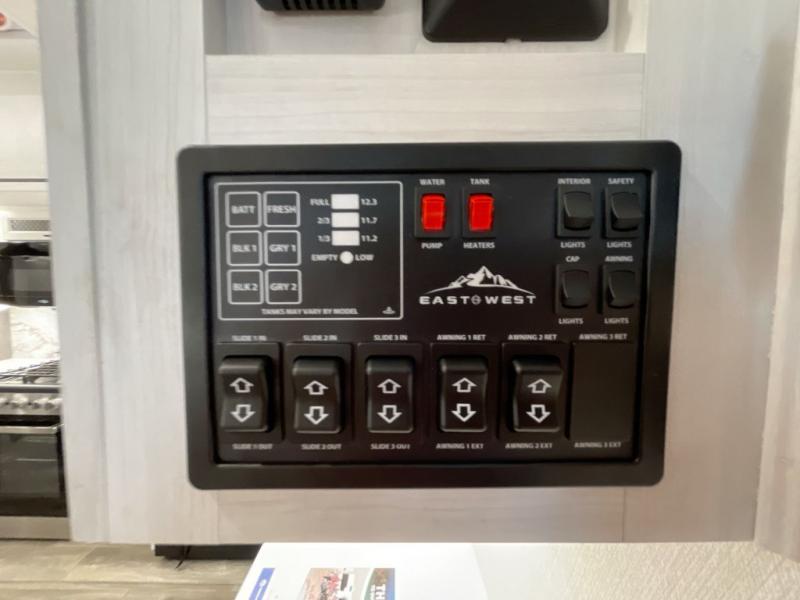 There is just too much luxury to name on the EAST TO WEST Ahara fifth wheel! These units are quite impressive, and once you see them, you'll know what we mean. The Ahara first grabs your attention with its fully painted aerodynamic fiberglass front cap, 102" wide-body chassis, and deep tint square frameless windows. For towing, you'll find a MORryde CRE 3000 suspension, LED marker lights, LED taillights with back-up lights, and rear view camera prep. Traveling in different climates is also made easy with the high-efficiency triple A/C system, 40,000 BTU high-capacity furnace, plus heated, insulated, and enclosed underbelly found within the Climate Package. Head inside to enjoy Slow Rise roller shades, a flush floor kitchen slide to help prevent trips, and solid surface countertops in the kitchen and bath to name a few luxuries!