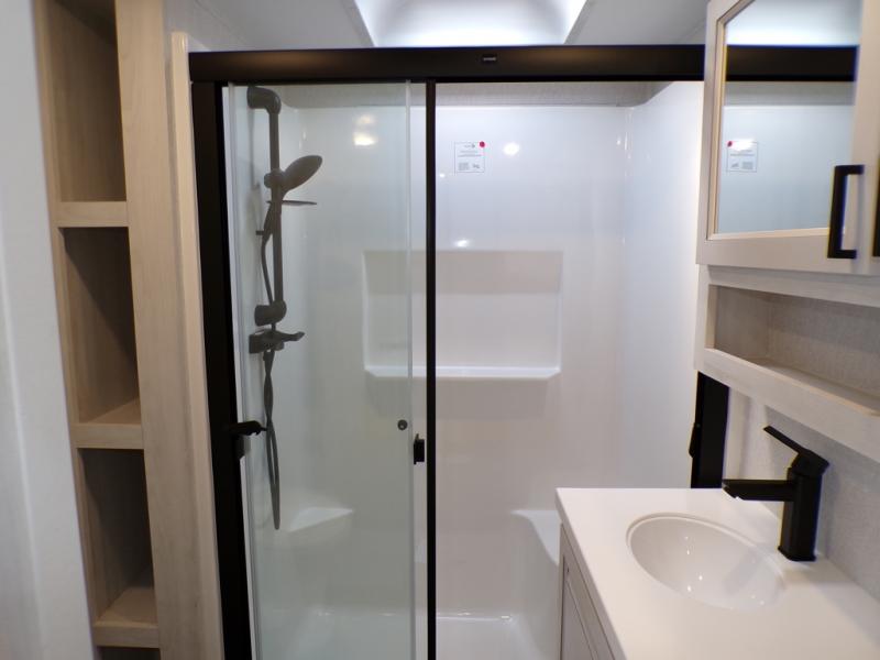 There is just too much luxury to name on the EAST TO WEST Ahara fifth wheel! These units are quite impressive, and once you see them, you'll know what we mean. The Ahara first grabs your attention with its fully painted aerodynamic fiberglass front cap, 102" wide-body chassis, and deep tint square frameless windows. For towing, you'll find a MORryde CRE 3000 suspension, LED marker lights, LED taillights with back-up lights, and rear view camera prep. Traveling in different climates is also made easy with the high-efficiency triple A/C system, 40,000 BTU high-capacity furnace, plus heated, insulated, and enclosed underbelly found within the Climate Package. Head inside to enjoy Slow Rise roller shades, a flush floor kitchen slide to help prevent trips, and solid surface countertops in the kitchen and bath to name a few luxuries!