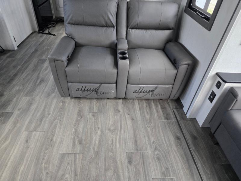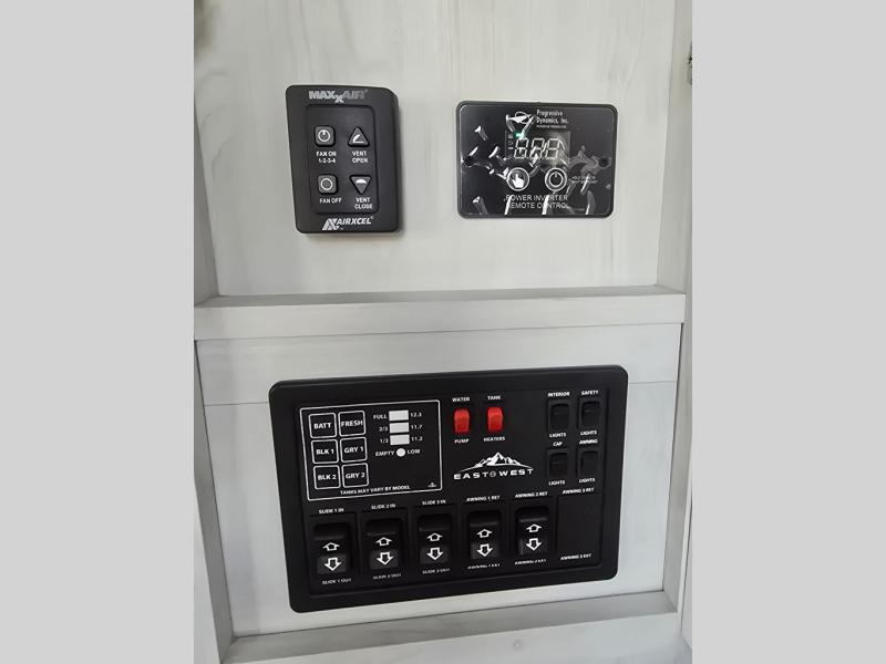 There is just too much luxury to name on the EAST TO WEST Ahara fifth wheel! These units are quite impressive, and once you see them, you'll know what we mean. The Ahara first grabs your attention with its hi-gloss gel-coated fiberglass exterior which showcases two power awnings with LED lights, an LP quick connect, an exterior cable/satellite hookup, and a universal all-in-one docking station. For towing, you'll find a MORryde CRE 3000 suspension, Dexter Gladiator thick-wall 7,000-LB axles with Nev-R-Adjust brakes, and preparations for a rearview camera. Traveling during all seasons is also made easy with the high-efficiency triple A/C system, a 40,000 BTU high-capacity furnace, a heated, insulated, and enclosed underbelly and dump valves with circulating heat, and Radiant Technology Composites insulation in the roof, front cap, and underbelly.