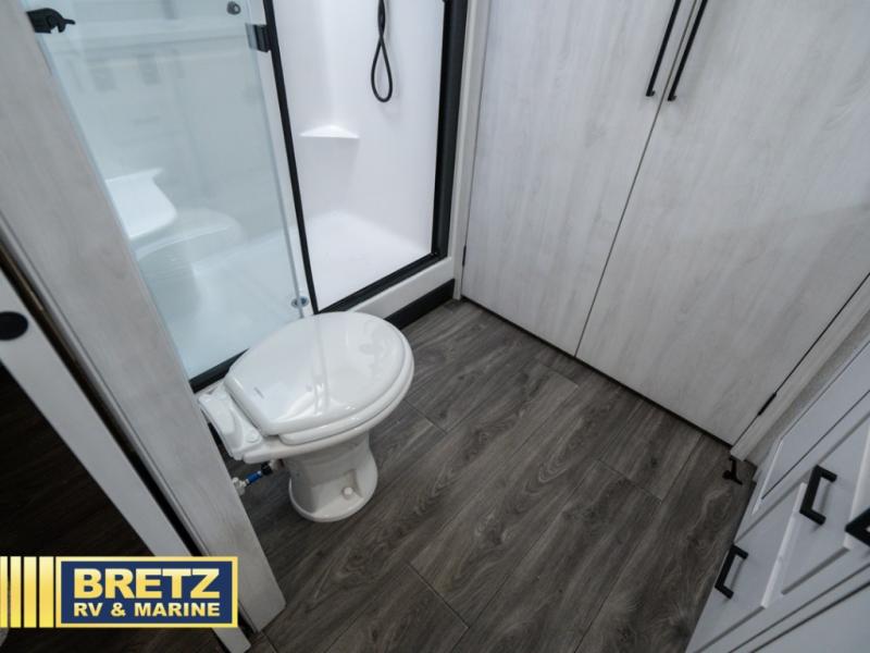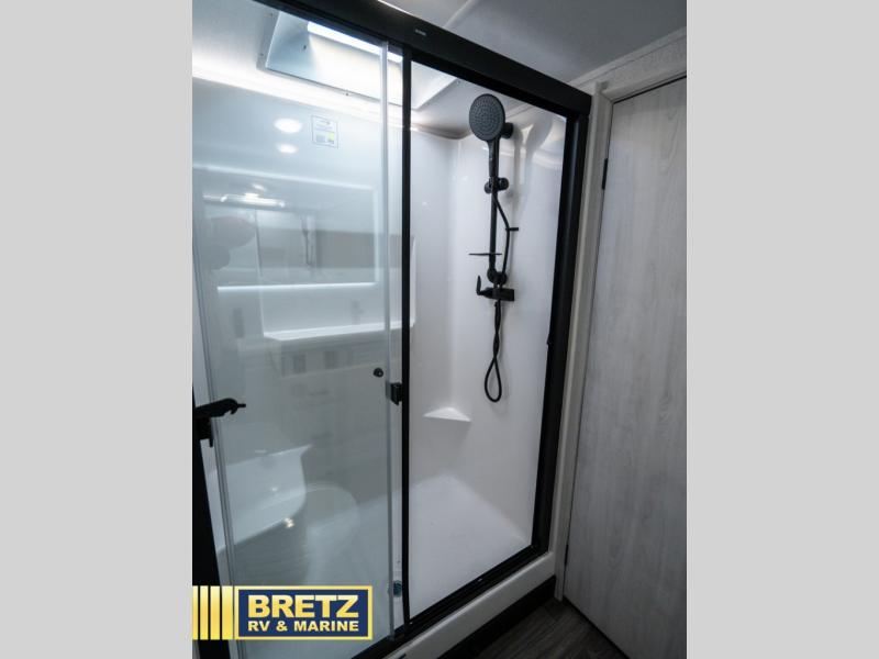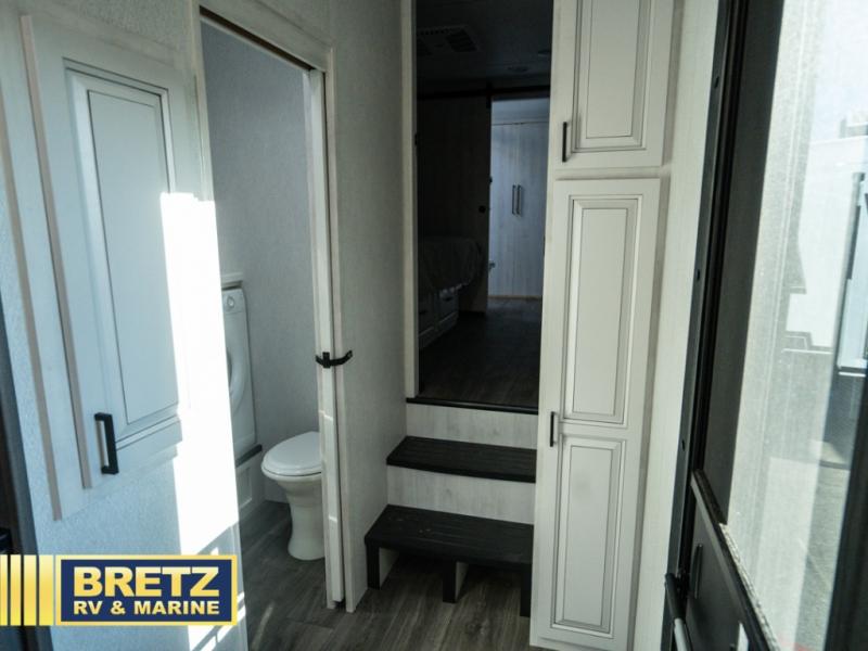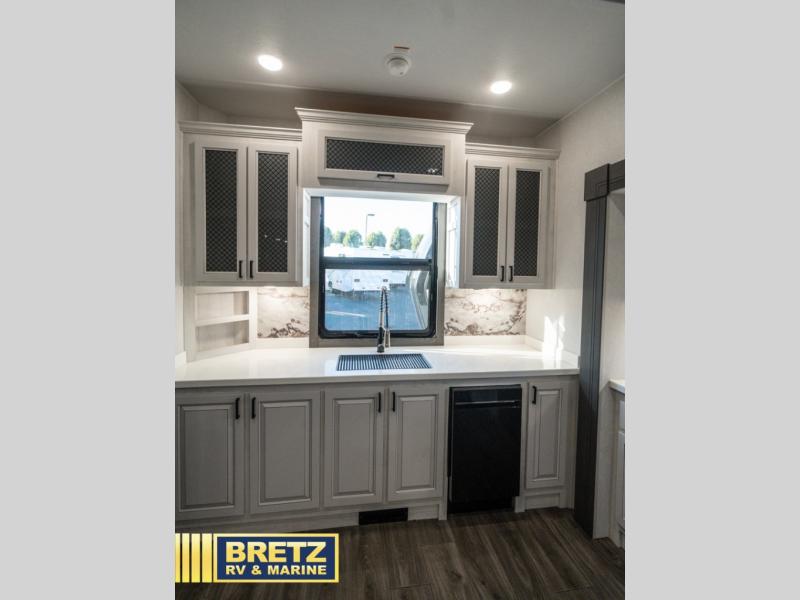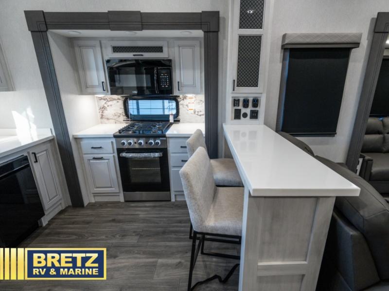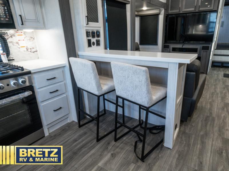 There is just too much luxury to name on the EAST TO WEST Ahara fifth wheel! These units are quite impressive, and once you see them, you'll know what we mean. The Ahara first grabs your attention with its hi-gloss gel-coated fiberglass exterior which showcases two power awnings with LED lights, an LP quick connect, an exterior cable/satellite hookup, and a universal all-in-one docking station. For towing, you'll find a MORryde CRE 3000 suspension, Dexter Gladiator thick-wall 7,000-LB axles with Nev-R-Adjust brakes, and preparations for a rearview camera. Traveling during all seasons is also made easy with the high-efficiency triple A/C system, a 40,000 BTU high-capacity furnace, a heated, insulated, and enclosed underbelly and dump valves with circulating heat, and Radiant Technology Composites insulation in the roof, front cap, and underbelly.
