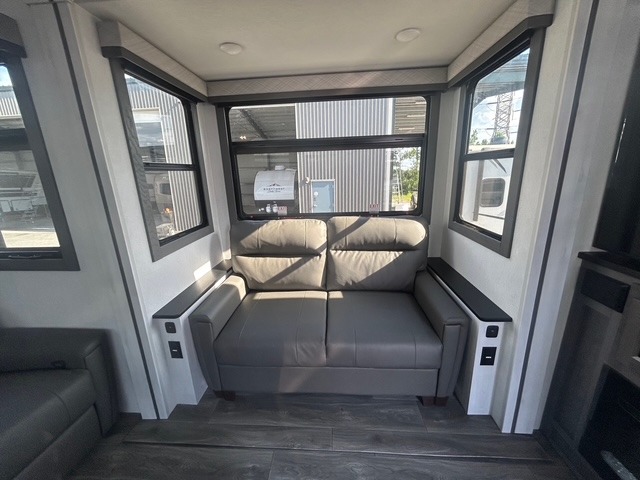 There is just too much luxury to name on the EAST TO WEST Ahara fifth wheel! These units are quite impressive, and once you see them, you'll know what we mean. The Ahara first grabs your attention with its hi-gloss gel-coated fiberglass exterior which showcases two power awnings with LED lights, an LP quick connect, an exterior cable/satellite hookup, and a universal all-in-one docking station. For towing, you'll find a MORryde CRE 3000 suspension, Dexter Gladiator thick-wall 7,000-LB axles with Nev-R-Adjust brakes, and preparations for a rearview camera. Traveling during all seasons is also made easy with the high-efficiency triple A/C system, a 40,000 BTU high-capacity furnace, a heated, insulated, and enclosed underbelly and dump valves with circulating heat, and Radiant Technology Composites insulation in the roof, front cap, and underbelly.