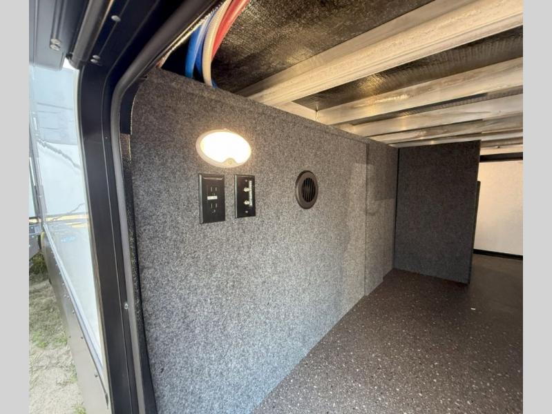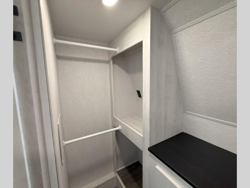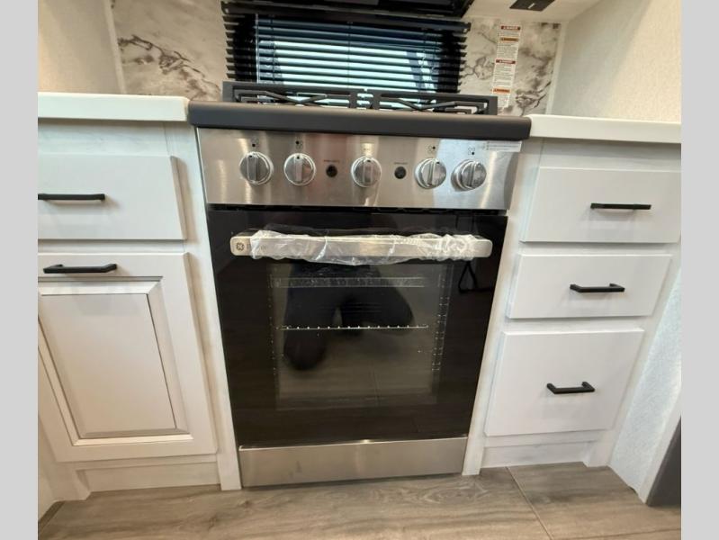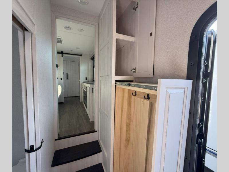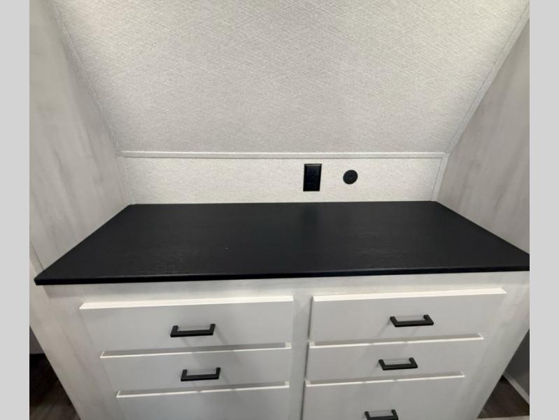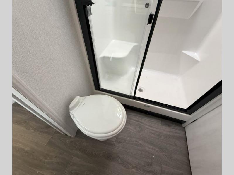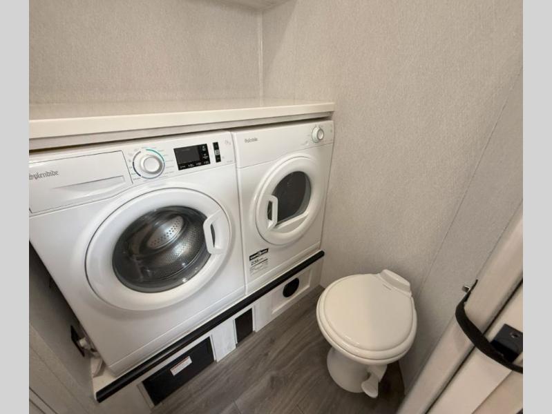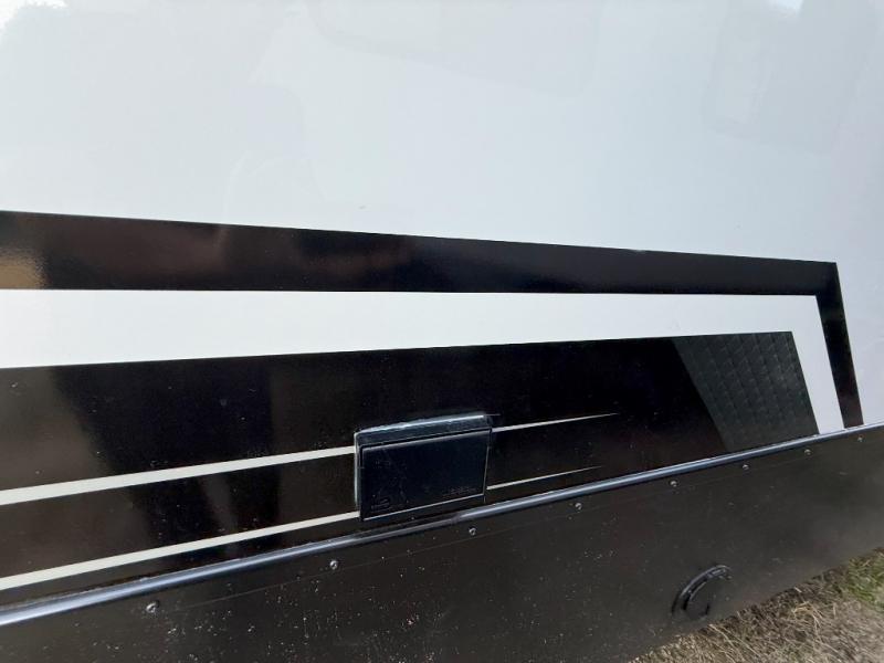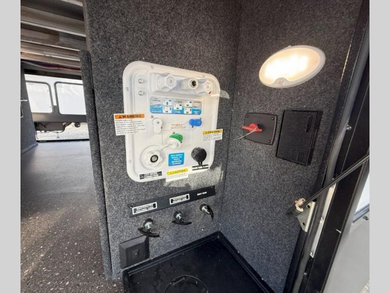 The spacious rear kitchen is equipped with a 30” microwave, 24” residential oven, overhead cabinets, breakfast bar with bar stools, walk-in pantry, and 16 cu. ft. refrigerator, perfect for cooking all your favorite dishes with the greatest convenience The living room is the heart of the home, featuring a desk with chairs, theater seating, two 60” trifold sofas, a TV with fireplace, and more. And when nature calls, you'll appreciate the convenient half bath with overhead cabinets and washer and dryer prep. The main bedroom is a serene retreat, featuring a king bed, drawers under the bed, a bedroom fireplace, and more. This is the perfect place to relax and recharge after a long day of adventure, and with a front full bathroom featuring a 30” x 40” shower, dual sink vanity, walk-in closet, dresser/drawers, you'll have everything you need to stay clean and comfortable on the go. Outside, you'll find not one, but two awnings to providing plenty of shade and protection from the elements.
