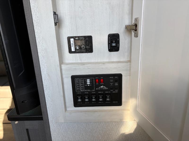 There is just too much luxury to name on the EAST TO WEST Ahara fifth wheel! These units are quite impressive, and once you see them, you'll know what we mean. The Ahara first grabs your attention with its fully painted aerodynamic fiberglass front cap, 102" wide-body chassis, and deep tint square frameless windows. For towing, you'll find a MORryde CRE 3000 suspension, LED marker lights, LED taillights with back-up lights, and rear view camera prep. Traveling in different climates is also made easy with the high-efficiency triple A/C system, 40,000 BTU high-capacity furnace, plus heated, insulated, and enclosed underbelly found within the Climate Package. Head inside to enjoy Slow Rise roller shades, a flush floor kitchen slide to help prevent trips, and solid surface countertops in the kitchen and bath to name a few luxuries!