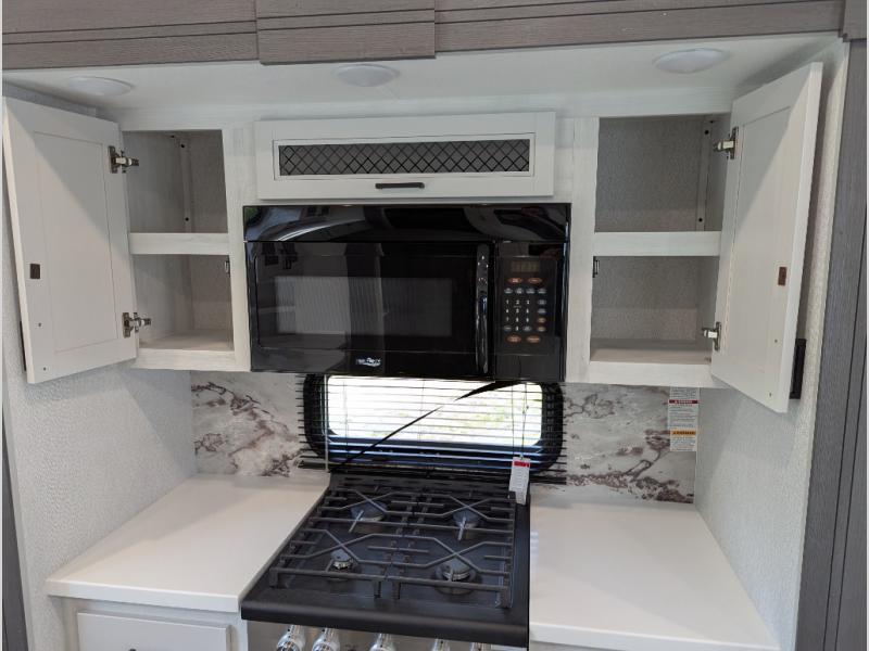 There is just too much luxury to name on the EAST TO WEST Ahara fifth wheel! These units are quite impressive, and once you see them, you'll know what we mean. The Ahara first grabs your attention with its fully painted aerodynamic fiberglass front cap, 102" wide-body chassis, and deep tint square frameless windows. For towing, you'll find a MORryde CRE 3000 suspension, LED marker lights, LED taillights with back-up lights, and rear view camera prep. Traveling in different climates is also made easy with the high-efficiency triple A/C system, 40,000 BTU high-capacity furnace, plus heated, insulated, and enclosed underbelly found within the Climate Package. Head inside to enjoy Slow Rise roller shades, a flush floor kitchen slide to help prevent trips, and solid surface countertops in the kitchen and bath to name a few luxuries!