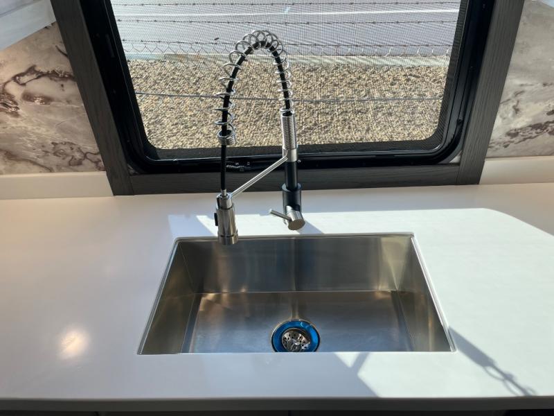 There is just too much luxury to name on the EAST TO WEST Ahara fifth wheel! These units are quite impressive, and once you see them, you'll know what we mean. The Ahara first grabs your attention with its fully painted aerodynamic fiberglass front cap, 102" wide-body chassis, and deep tint square frameless windows. For towing, you'll find a MORryde CRE 3000 suspension, LED marker lights, LED taillights with back-up lights, and rear view camera prep. Traveling in different climates is also made easy with the high-efficiency triple A/C system, 40,000 BTU high-capacity furnace, plus heated, insulated, and enclosed underbelly found within the Climate Package. Head inside to enjoy Slow Rise roller shades, a flush floor kitchen slide to help prevent trips, and solid surface countertops in the kitchen and bath to name a few luxuries!
