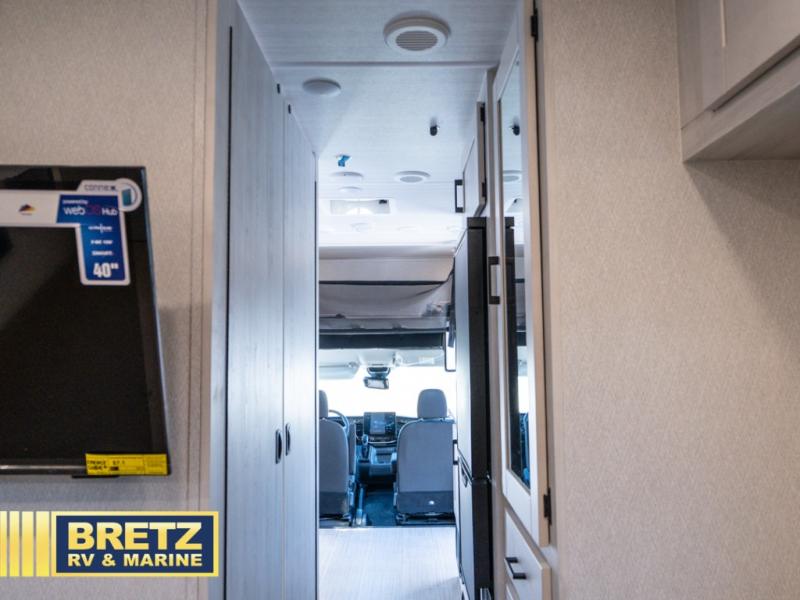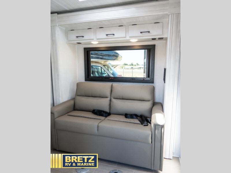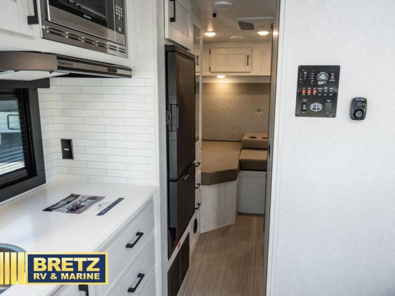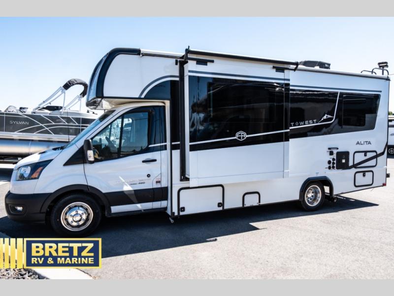 The Alita Class C gas motorhome is fueled by a 3.5L EcoBoost V6 engine which sits on the all-new Ford AWD 350 Transit chassis with 10-speed automatic Selectshift transmission. The Alita features Azdel composite sidewall and slidebox construction along with a one-piece automotive painted fiberglass front cap, Dicor Diflex II TPO roof membrane, and side port solar panel hook-up, plus more. On the inside, a cabover bunk for added sleeping or storage, a portable induction cooktop, a premium subway tile backsplash, and the Alita value package also features a luxury legless Girard awning with LED light strip, panoramic windows with integrated night shades for great views during the day and privacy when you want it at night. You will also appreciate the solar charge package option and so much more!