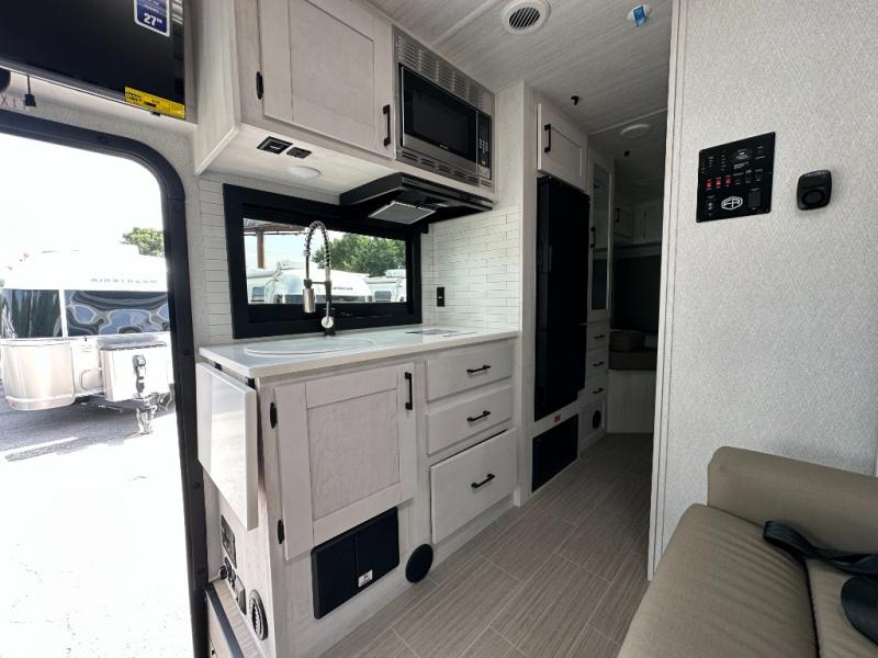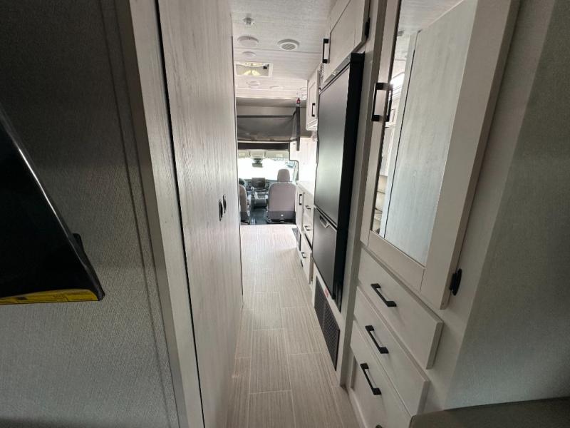 The Alita Class C gas motorhome is fueled by a 3.5L EcoBoost V6 engine which sits on the all-new Ford AWD 350 Transit chassis with 10-speed automatic Selectshift transmission. The Alita features Azdel composite sidewall and slidebox construction along with a one-piece automotive painted fiberglass front cap, Dicor Diflex II TPO roof membrane, and side port solar panel hook-up, plus more. On the inside, a cab over bunk for added sleeping or storage, a portable induction cooktop, a premium subway tile backsplash, and the Alita value package also features a luxury legless Girard awning with LED light strip, panoramic windows with integrated night shades for great views during the day and privacy when you want it at night. You will also appreciate the solar charge package option and so much more!