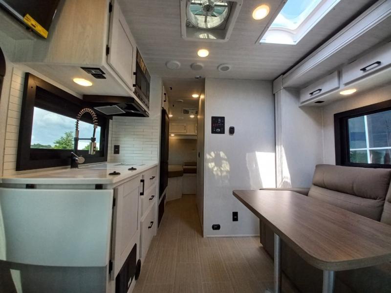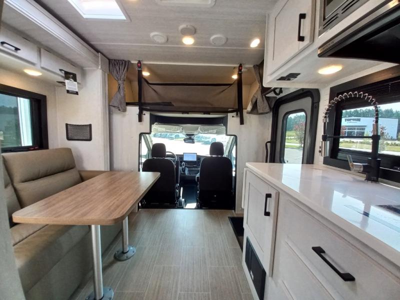 The Alita Class C gas motorhome is fueled by a 3.5L EcoBoost V6 engine which sits on the all-new Ford AWD 350 Transit chassis with 10-speed automatic Selectshift transmission. The Alita features Azdel composite sidewall and slidebox construction along with a one-piece automotive painted fiberglass front cap, Dicor Diflex II TPO roof membrane, and side port solar panel hook-up, plus more. On the inside, a cab over bunk for added sleeping or storage, a portable induction cooktop, a premium subway tile backsplash, and the Alita value package also features a luxury legless Girard awning with LED light strip, panoramic windows with integrated night shades for great views during the day and privacy when you want it at night. You will also appreciate the solar charge package option and so much more!