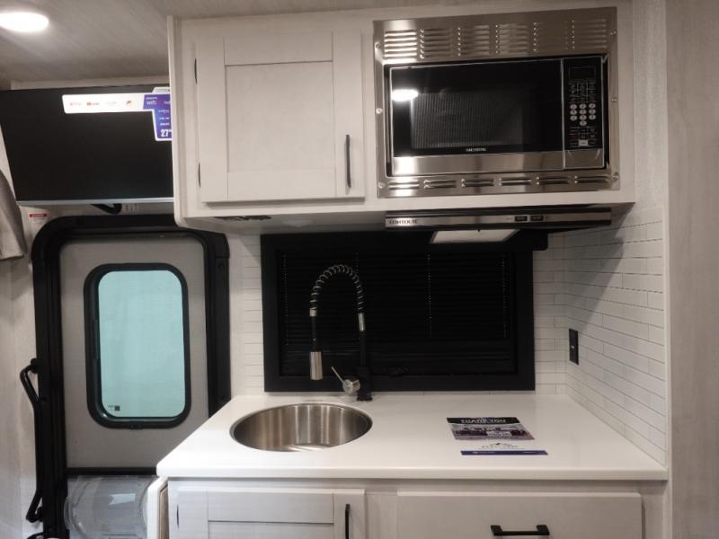 The Alita Class C gas motorhome is fueled by a 3.5L EcoBoost V6 engine which sits on the Ford AWD 350 Transit chassis with 10-speed automatic Selectshift transmission. The Alita features Azdel composite sidewall and slidebox construction along with a one-piece automotive painted fiberglass front cap, Dicor Diflex II TPO roof membrane, and side port solar panel hook-up, plus more. On the inside, a cab over bunk adds sleeping or storage, and a portable induction cooktop will let you create meals on the go. The Alita value package features a luxury legless Girard awning with LED light strip, panoramic windows with integrated night shades for great views during the day and privacy when you want it at night.