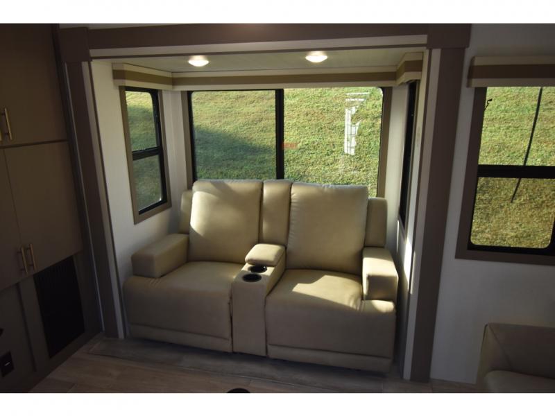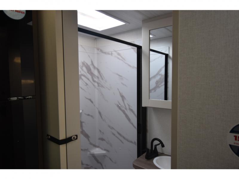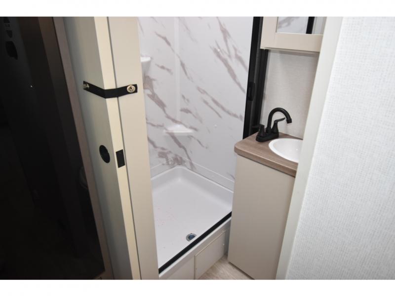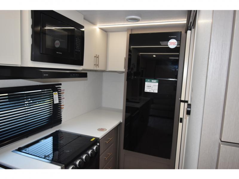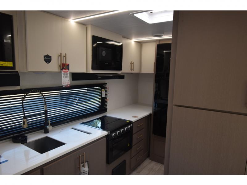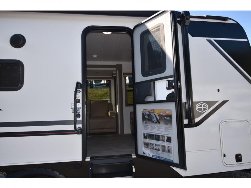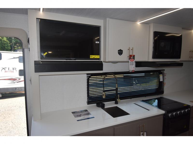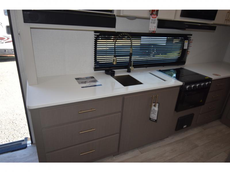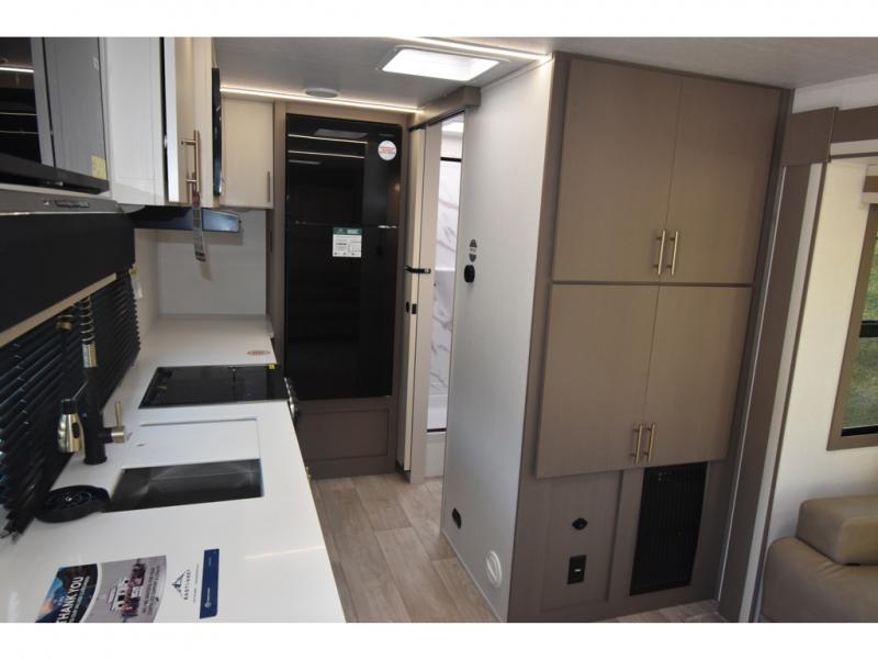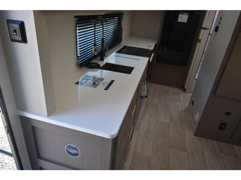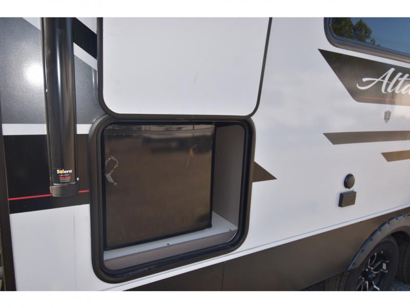 If you're looking for the perfect travel trailer for weekend getaways you've found it in this Alta model. The queen Murphy bed up front can be folded up in the morning so you can relax on the sofa, or you may just want to enjoy your coffee on the tri-fold sofa that can be optioned out for theater seats. Your meals can be prepared on the three burner cooktop or in the microwave oven, and you can dine outdoors under the 16' power awning. This model also includes a universal docking station for an all-in one location for you hookups and utilities. How convenient!