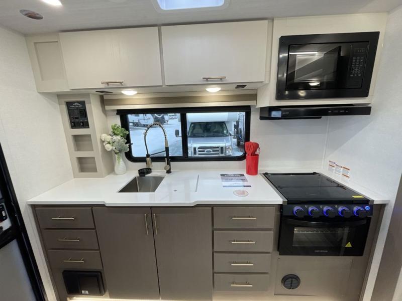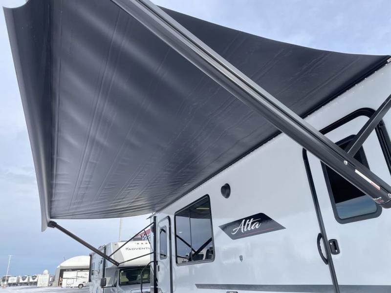 Each Alta travel trailer or toy hauler by EAST TO WEST is constructed with a 5" vacuum bonded roof, an enclosed and heated underbelly, and diamond plate front rock guard for added protection. Outside, you'll find marine-grade exterior speakers, a universal docking station, and back-up camera prep that can be added to make maneuvering in and out of campgrounds easier than ever. Inside, there are 4k interior LED lights, solid pressed membrane countertops, black roller shades, and many more interior comforts you are sure to love.