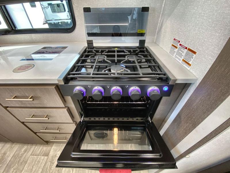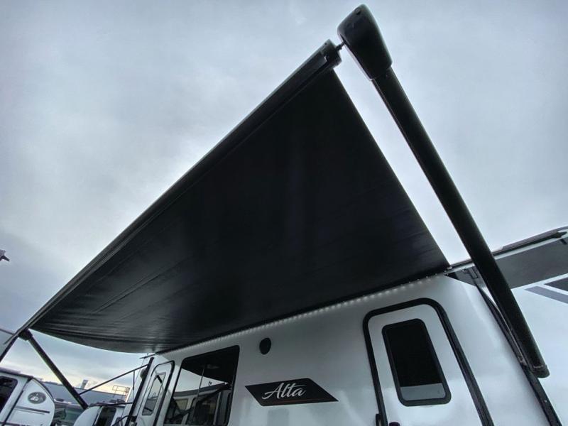 Each Alta travel trailer or toy hauler by EAST TO WEST is constructed with a 5" vacuum bonded roof, an enclosed and heated underbelly, and diamond plate front rock guard for added protection. Outside, you'll find marine-grade exterior speakers, a universal docking station, and back-up camera prep that can be added to make maneuvering in and out of campgrounds easier than ever. Inside, there are 4k interior LED lights, solid pressed membrane countertops, black roller shades, and many more interior comforts you are sure to love.