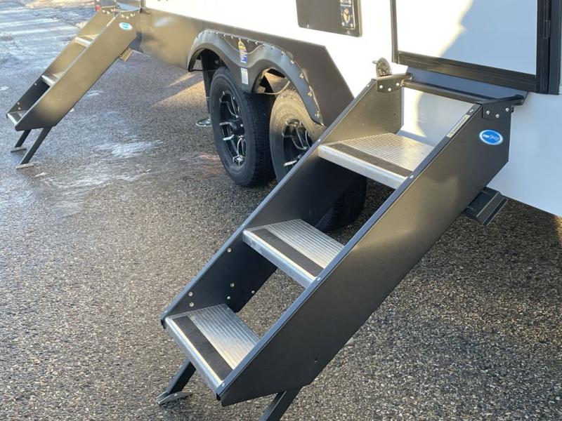 Each Alta travel trailer or toy hauler by EAST TO WEST is constructed with a 5" vacuum bonded roof, an enclosed and heated underbelly, and diamond plate front rock guard for added protection. Outside, you'll find marine-grade exterior speakers, a universal docking station, and back-up camera prep that can be added to make maneuvering in and out of campgrounds easier than ever. Inside, there are 4k interior LED lights, solid pressed membrane countertops, black roller shades, and many more interior comforts you are sure to love.