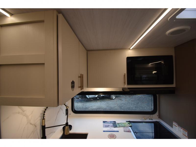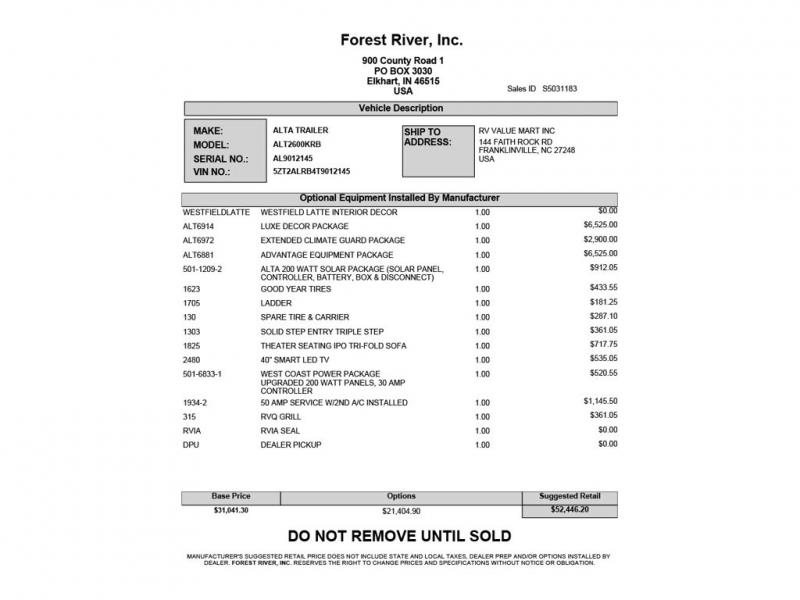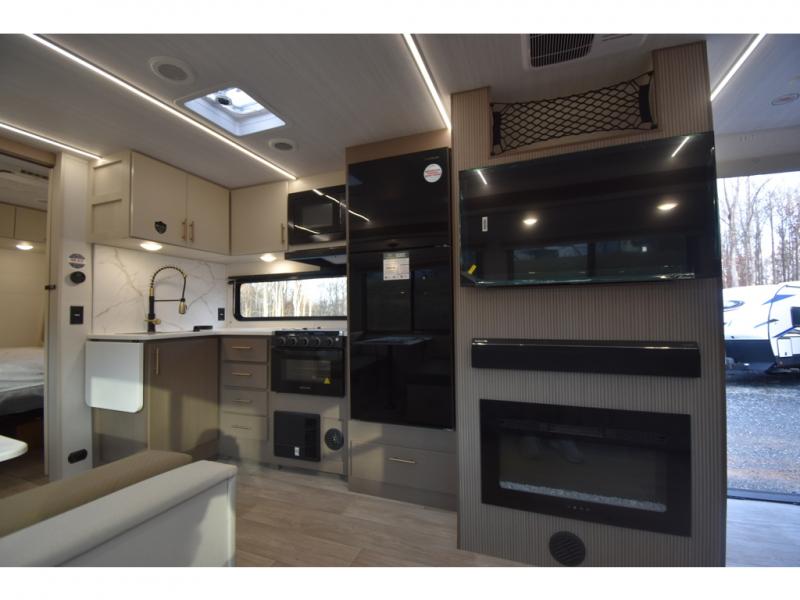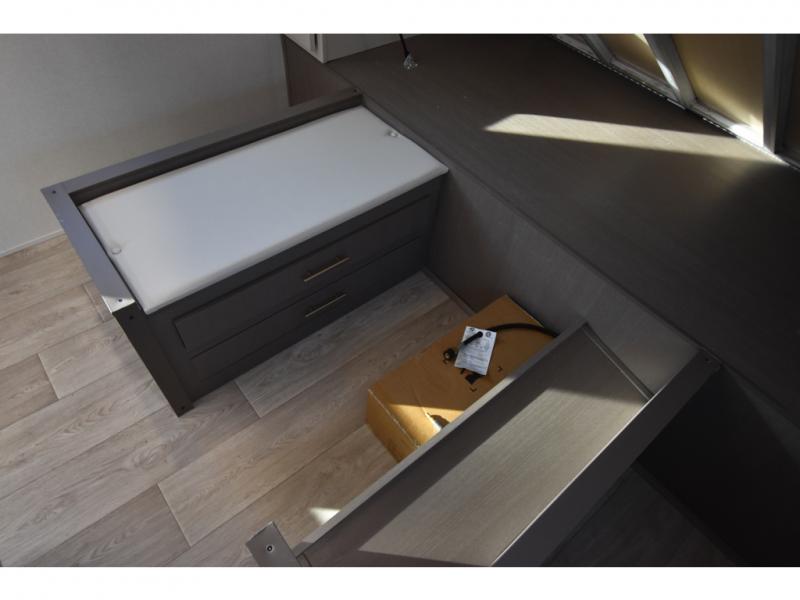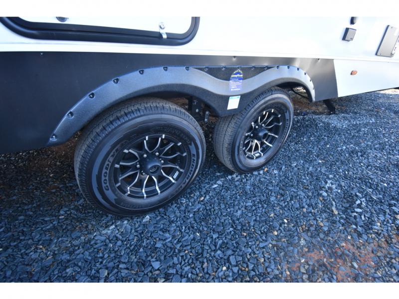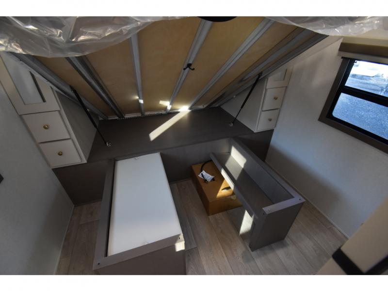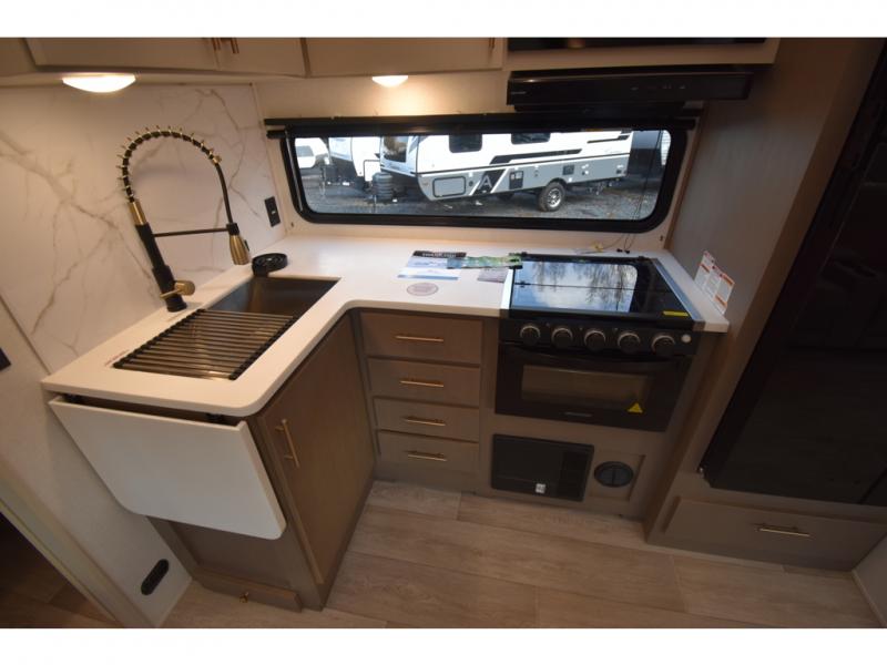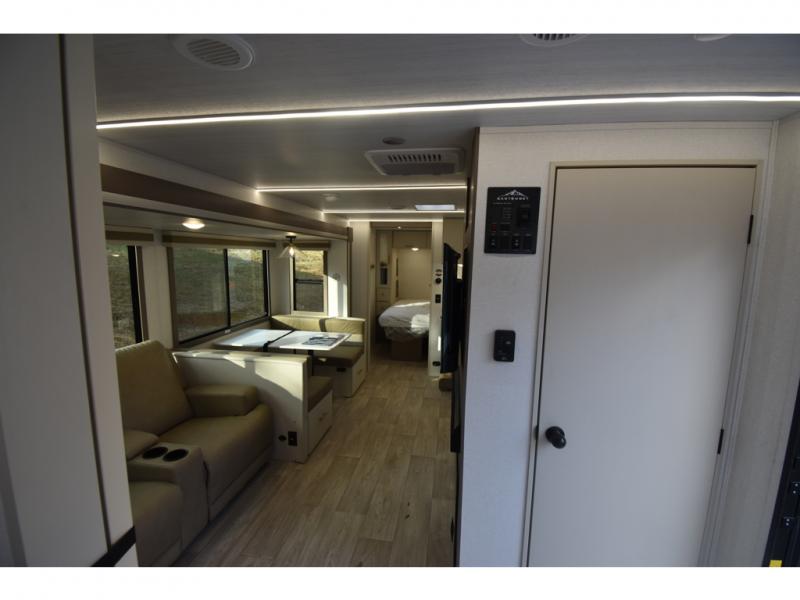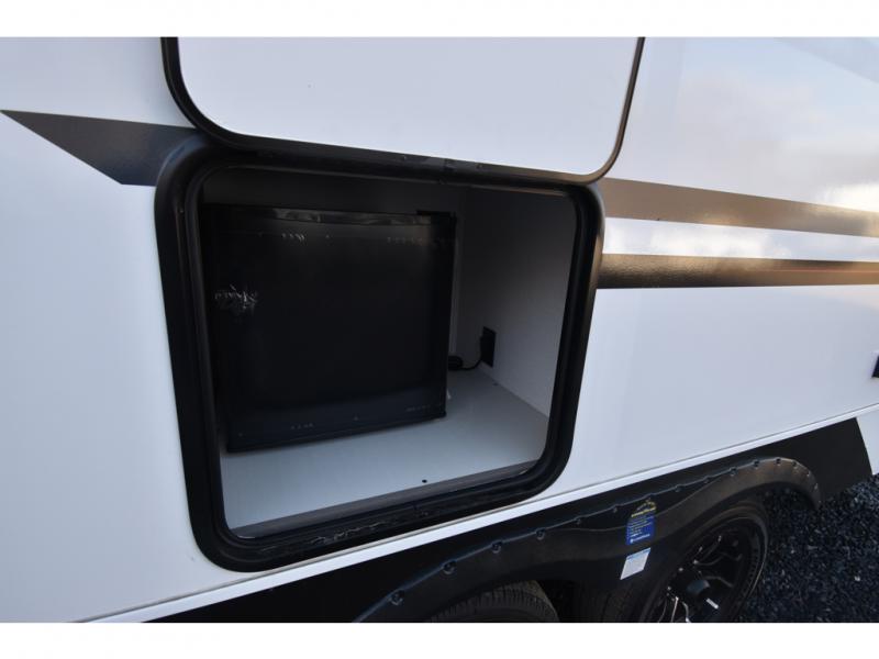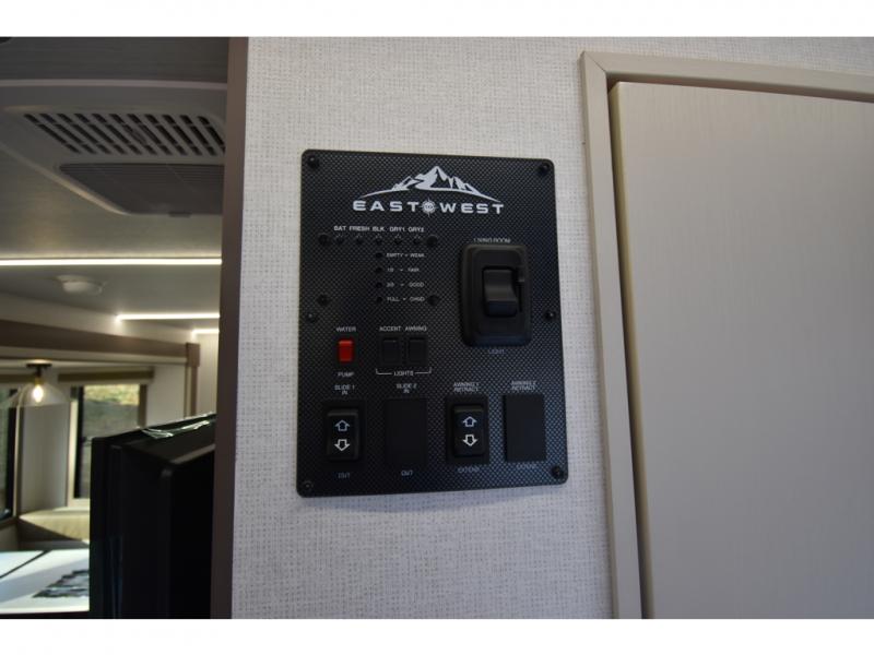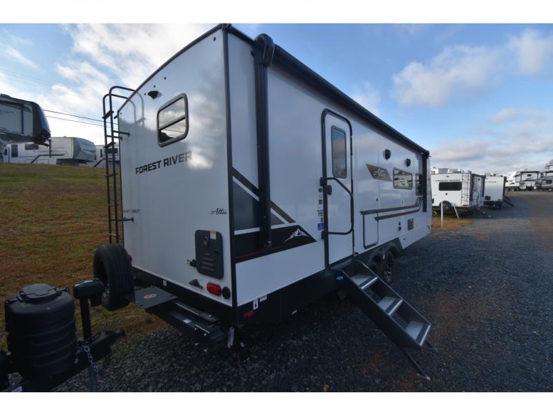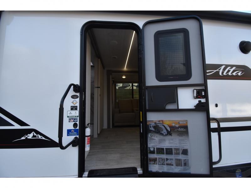 Each Alta travel trailer or toy hauler by EAST TO WEST is constructed with a 5" vacuum bonded roof, an enclosed and heated underbelly, and diamond plate front rock guard for added protection. Outside, you'll find marine-grade exterior speakers, a universal docking station, and back-up camera prep that can be added to make maneuvering in and out of campgrounds easier than ever. Inside, there are 4k interior LED lights, solid pressed membrane countertops, black roller shades, and many more interior comforts you are sure to love.