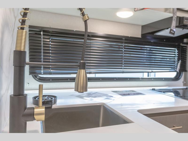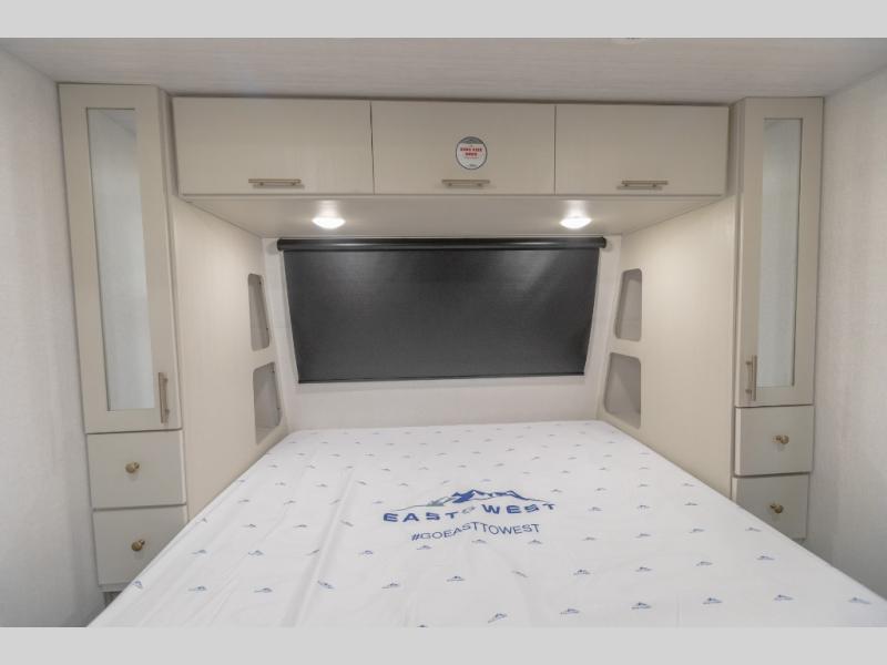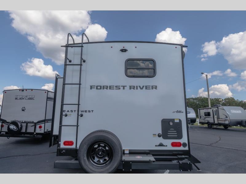 Each Alta travel trailer or toy hauler by EAST TO WEST is constructed with a 5" vacuum bonded roof, an enclosed and heated underbelly, and diamond plate front rock guard for added protection. Outside, you'll find marine-grade exterior speakers, a universal docking station, and back-up camera prep that can be added to make maneuvering in and out of campgrounds easier than ever. Inside, there are 4k interior LED lights, solid pressed membrane countertops, black roller shades, and many more interior comforts you are sure to love.