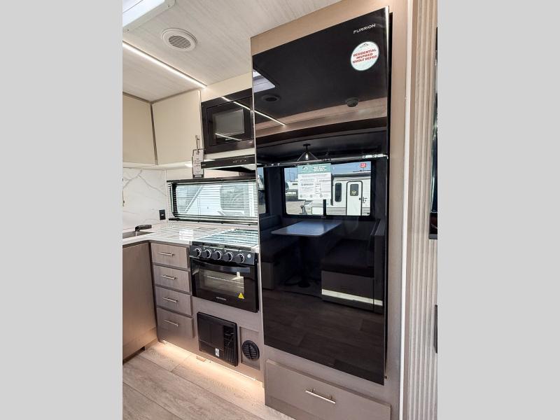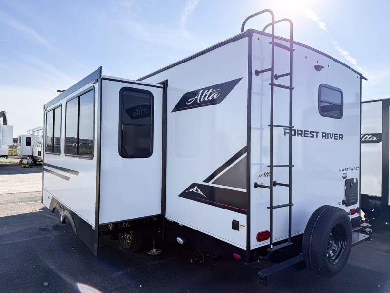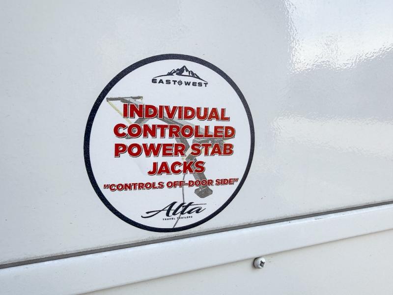 Each Alta travel trailer or toy hauler by EAST TO WEST is constructed with a 5" vacuum bonded roof, an enclosed and heated underbelly, and diamond plate front rock guard for added protection. Outside, you'll find exterior LED lights, a universal docking station, and back-up camera prep that can be added to make maneuvering in and out of campgrounds easier than ever. Inside, there are upgraded residential-inspired linoleum flooring, solid pressed membrane countertops, black roller shades, and many more interior comforts you are sure to love.