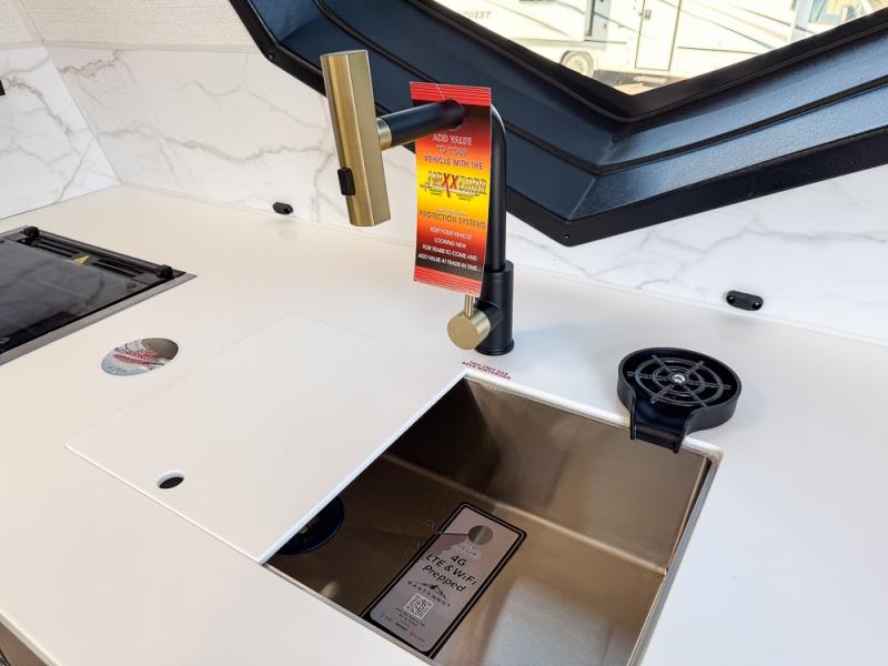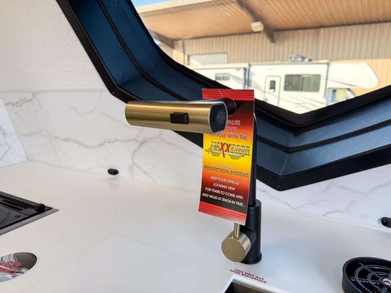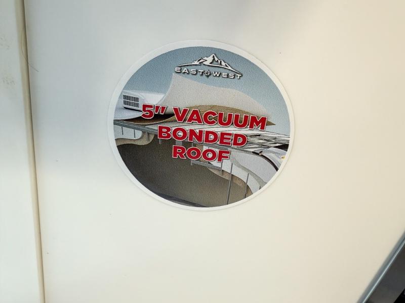 Each Alta travel trailer or toy hauler by EAST TO WEST is constructed with a 5" vacuum bonded roof, an enclosed and heated underbelly, and diamond plate front rock guard for added protection. Outside, you'll find exterior LED lights, a universal docking station, and back-up camera prep that can be added to make maneuvering in and out of campgrounds easier than ever. Inside, there are upgraded residential-inspired linoleum flooring, solid pressed membrane countertops, black roller shades, and many more interior comforts you are sure to love.
