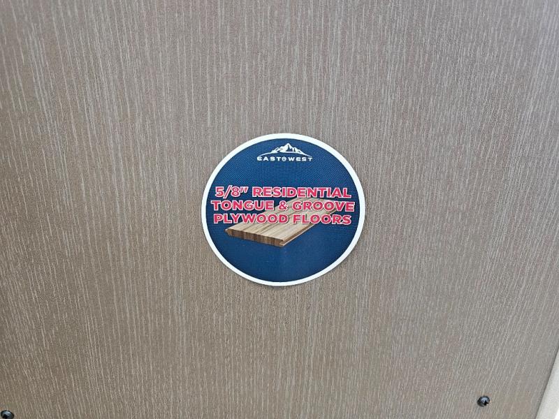 Each Alta travel trailer or toy hauler by EAST TO WEST is constructed with a 5" vacuum bonded roof, an enclosed and heated underbelly, and diamond plate front rock guard for added protection. Outside, you'll find exterior LED lights, a universal docking station, and back-up camera prep that can be added to make maneuvering in and out of campgrounds easier than ever. Inside, there are upgraded residential-inspired linoleum flooring, solid pressed membrane countertops, black roller shades, and many more interior comforts you are sure to love.