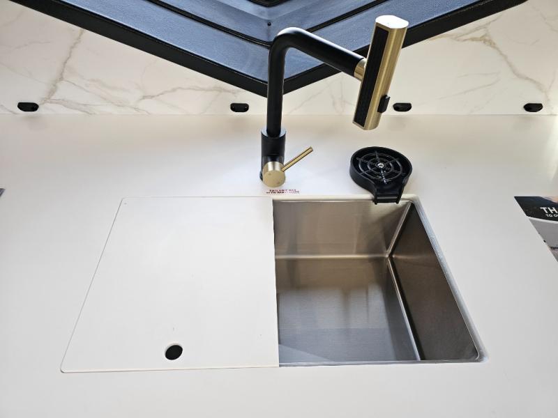 Each Alta travel trailer or toy hauler by EAST TO WEST is constructed with a 5" vacuum bonded roof, an enclosed and heated underbelly, and diamond plate front rock guard for added protection. Outside, you'll find exterior LED lights, a universal docking station, and back-up camera prep that can be added to make maneuvering in and out of campgrounds easier than ever. Inside, there are upgraded residential-inspired linoleum flooring, solid pressed membrane countertops, black roller shades, and many more interior comforts you are sure to love.