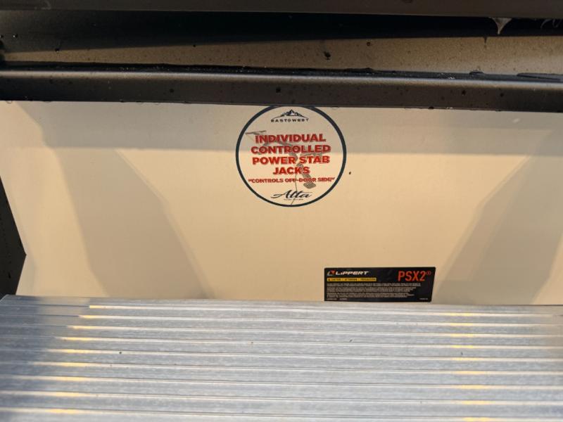 Each Alta travel trailer or toy hauler by EAST TO WEST is constructed with a 5" vacuum bonded roof, an enclosed and heated underbelly, and diamond plate front rock guard for added protection. Outside, you'll find exterior LED lights, a universal docking station, and back-up camera prep that can be added to make maneuvering in and out of campgrounds easier than ever. Inside, there are upgraded residential-inspired linoleum flooring, solid pressed membrane countertops, black roller shades, and many more interior comforts you are sure to love.