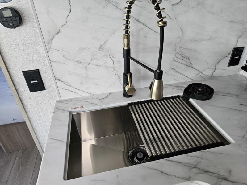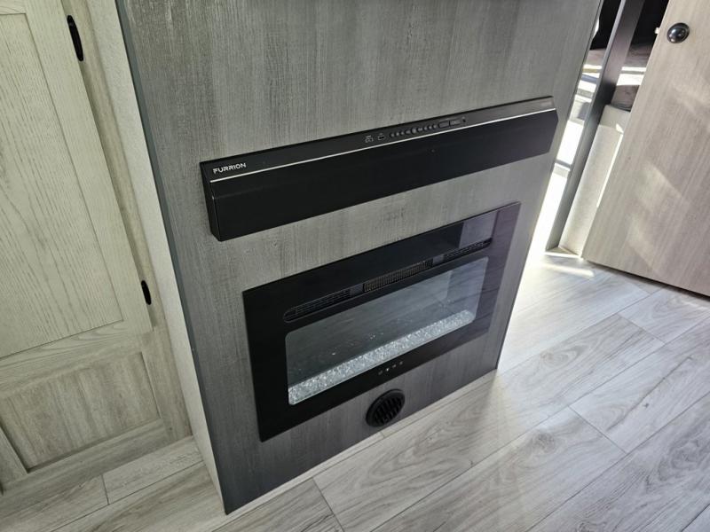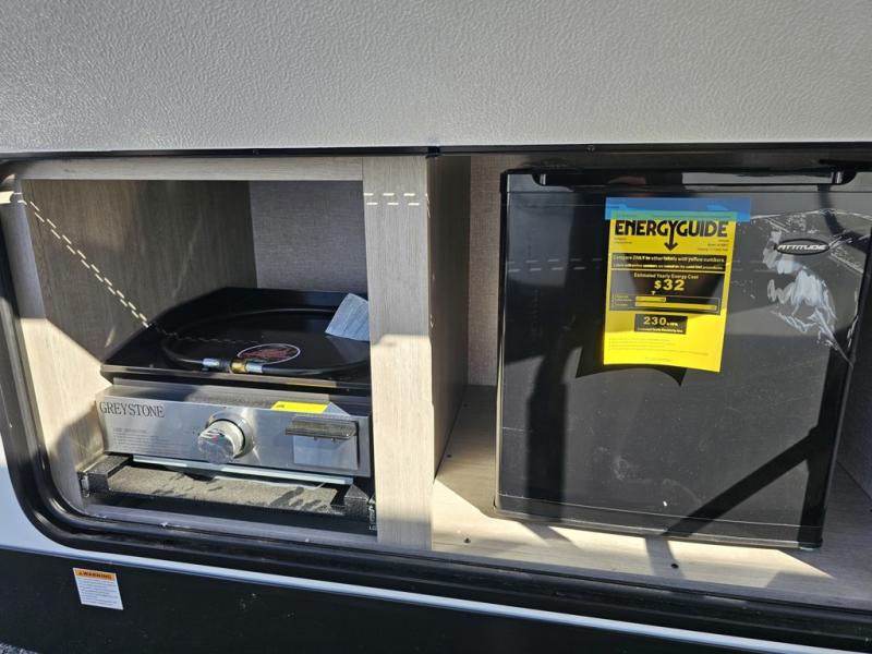This is the ultimate family-friendly travel trailer thanks to the double-size bunks with bike storage in the back. A king bed in the front bedroom will make you feel right at home, plus there are dual wardrobes and dual nightstands for your things. The large slide out in the main living area won't leave you feeling confined, and the tri-fold sofa and booth dinette will provide comfortable seating space. The chef of your group can start lunch on the outside kitchen while the kids grab their scooters from the pass-through storage. And don't forget there is a universal docking station to quickly access your utilities when needed.