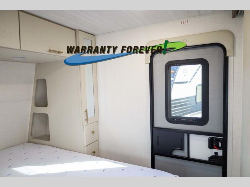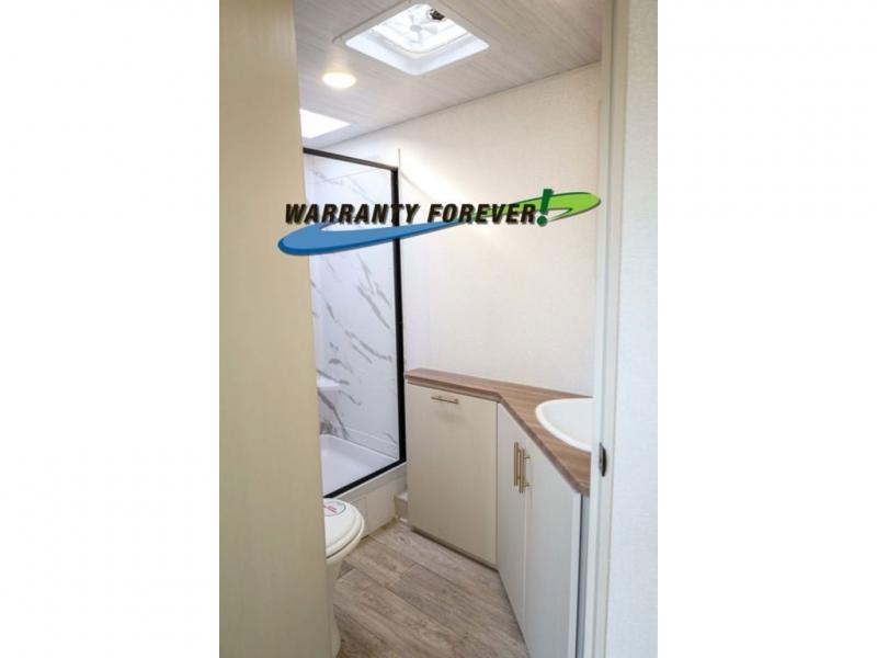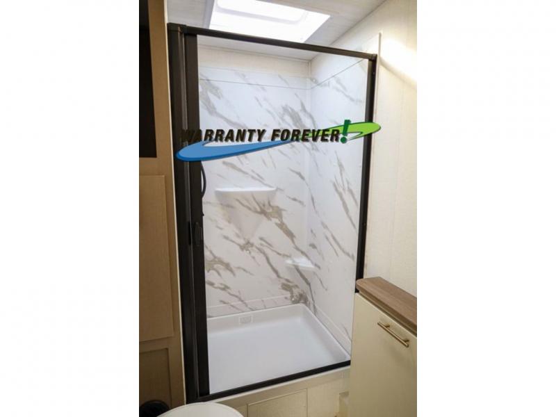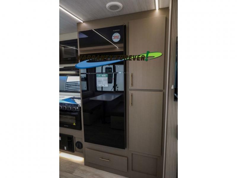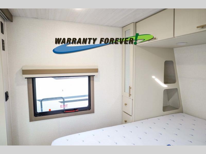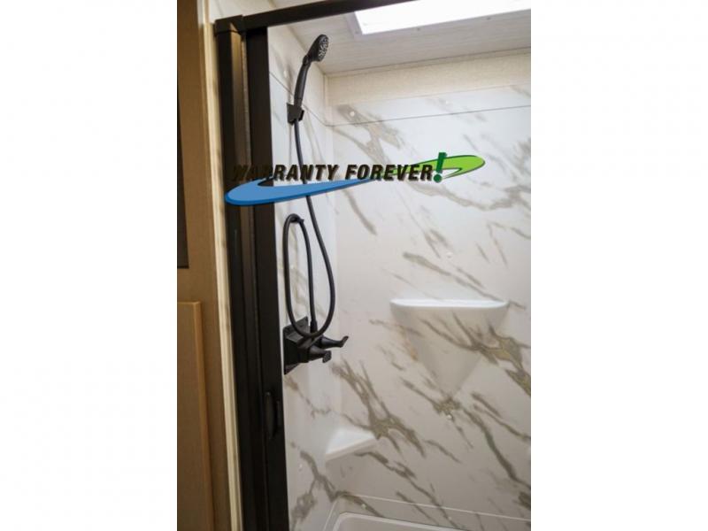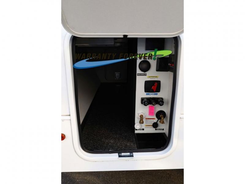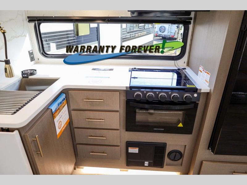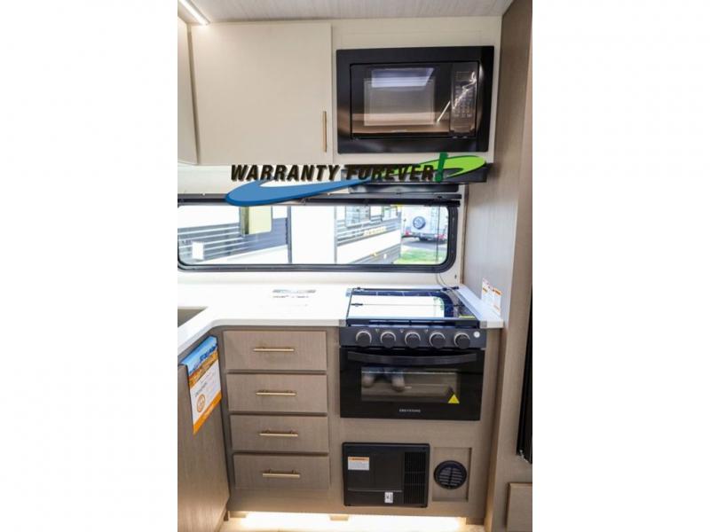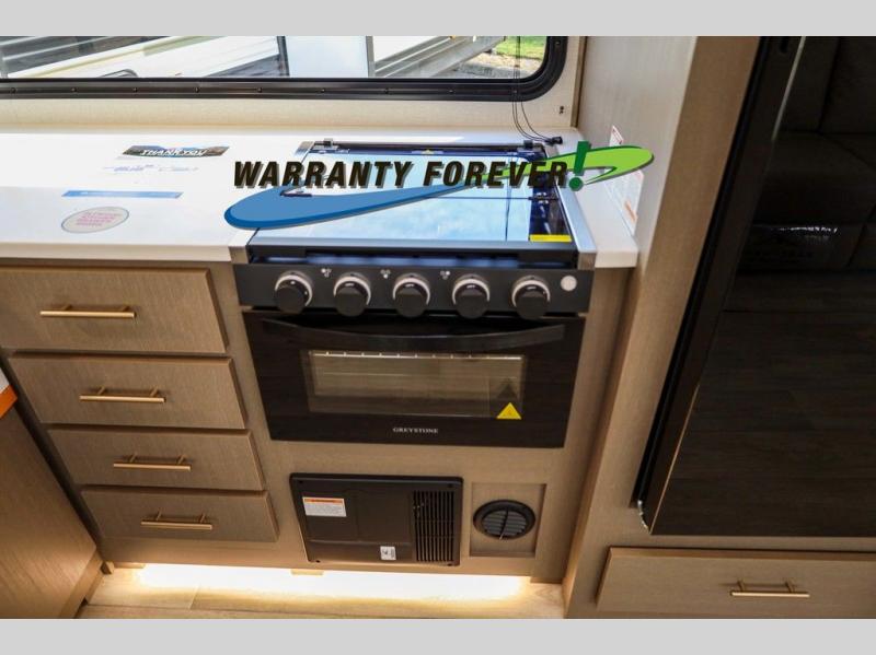 This is the ultimate family-friendly travel trailer thanks to the double-size bunks with bike storage in the back. A king bed in the front bedroom will make you feel right at home, plus there are dual wardrobes and dual nightstands for your things. The large slide out in the main living area won't leave you feeling confined, and the tri-fold sofa and booth dinette will provide comfortable seating space. The chef of your group can start lunch on the outside kitchen while the kids grab their scooters from the pass-through storage. And don't forget there is a universal docking station to quickly access your utilities when needed.