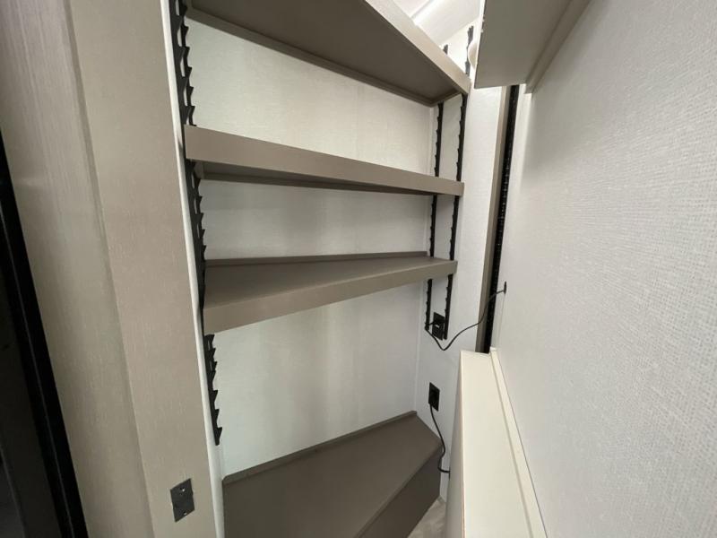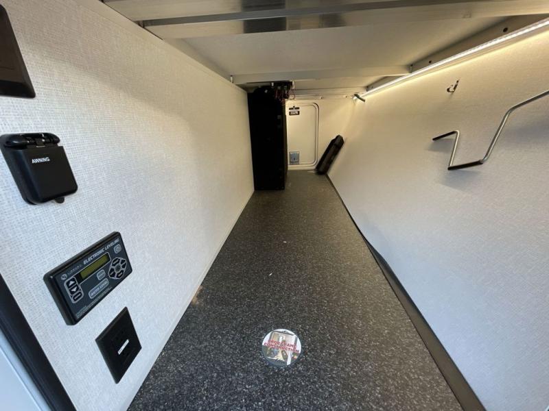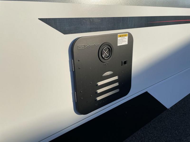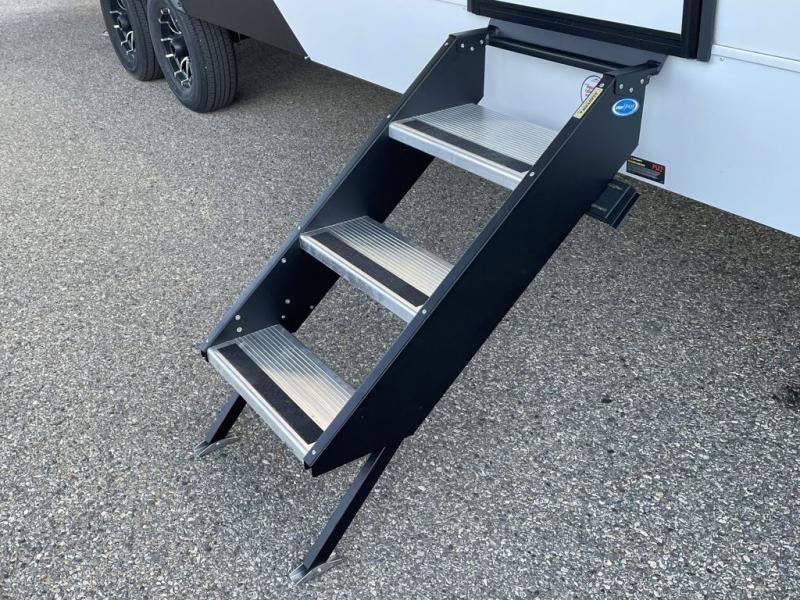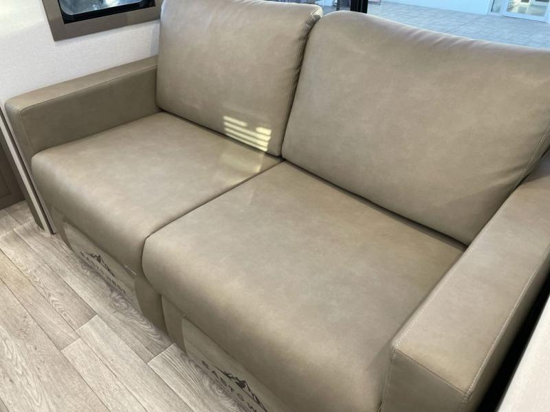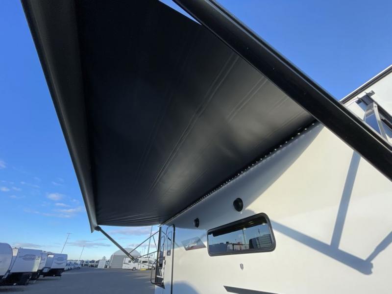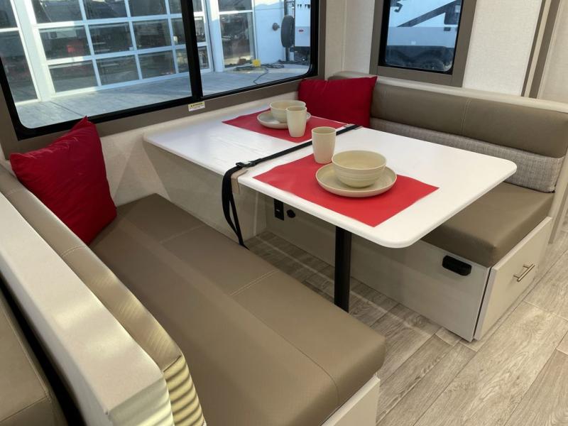 You'll feel right at home in this rear living travel trailer that includes theater seats and a front master bedroom with a king bed. The walk-through bath includes a medicine cabinet and a shower skylight to let natural light in, and the bedroom includes its own exterior entry door for convenience. When you're not relaxing outdoors under the 21' power awning with LED lights, you can play a game at the booth dinette or relax on the tri-fold sofa. This model also includes a pass-through storage for your larger camp gear and a universal docking station for easy access to your hookups.