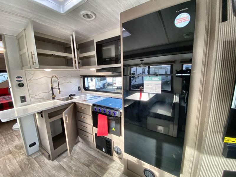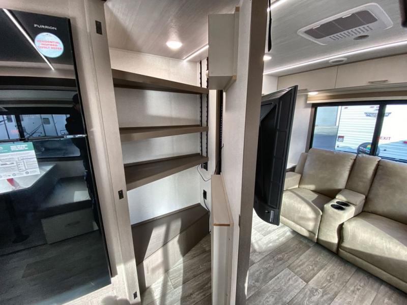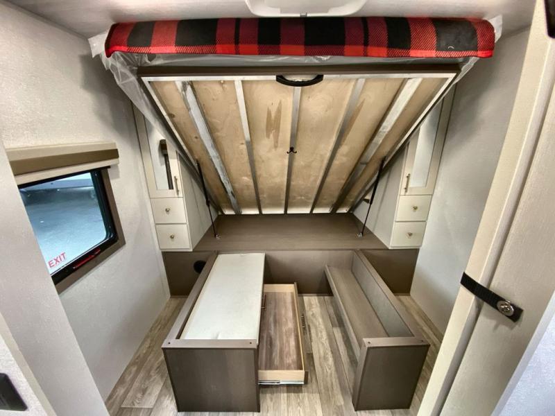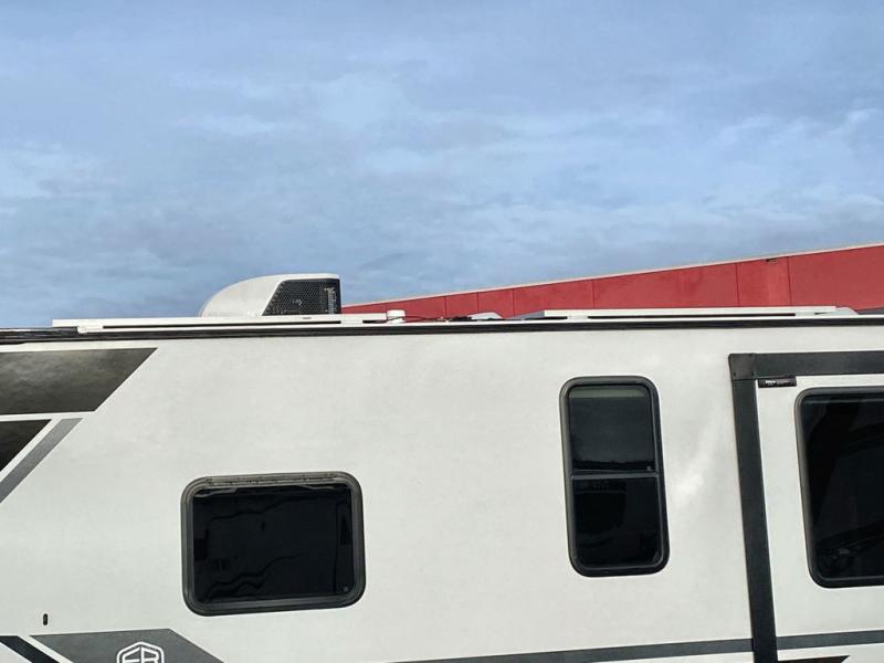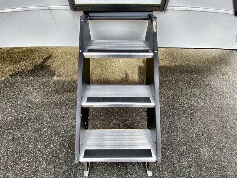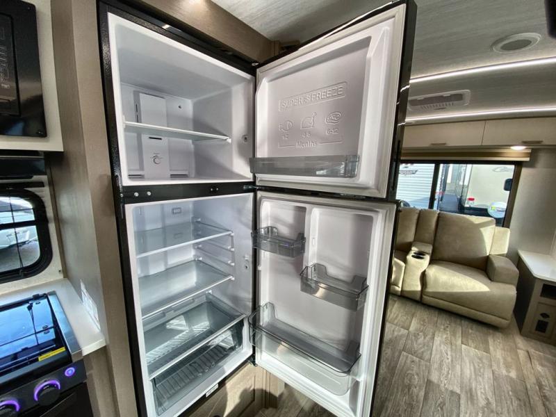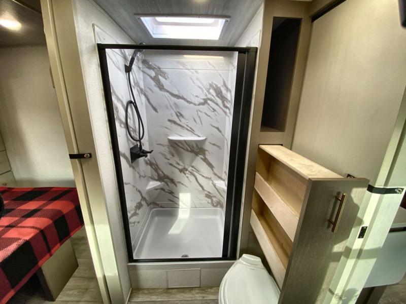 You'll feel right at home in this rear living travel trailer that includes theater seats and a front master bedroom with a king bed. The walk-through bath includes a medicine cabinet and a shower skylight to let natural light in, and the bedroom includes its own exterior entry door for convenience. When you're not relaxing outdoors under the 21' power awning with LED lights, you can play a game at the booth dinette or relax on the tri-fold sofa. This model also includes a pass-through storage for your larger camp gear and a universal docking station for easy access to your hookups.