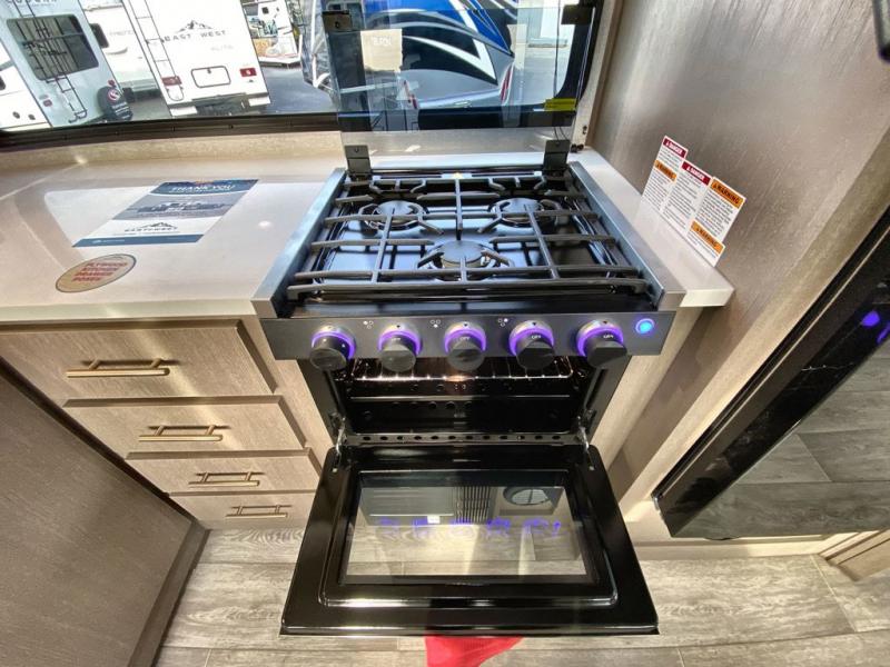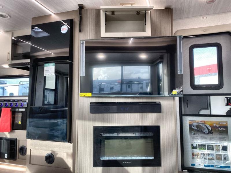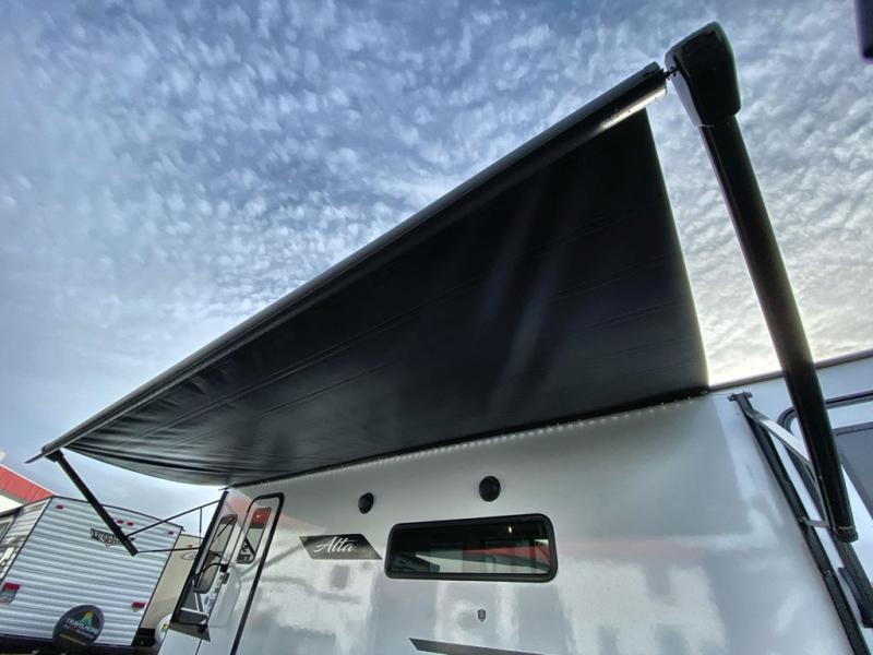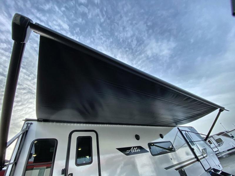 Each Alta travel trailer or toy hauler by EAST TO WEST is constructed with a 5" vacuum bonded roof, an enclosed and heated underbelly, and diamond plate front rock guard for added protection. Outside, you'll find marine-grade exterior speakers, a universal docking station, and back-up camera prep that can be added to make maneuvering in and out of campgrounds easier than ever. Inside, there are 4k interior LED lights, solid pressed membrane countertops, black roller shades, and many more interior comforts you are sure to love.