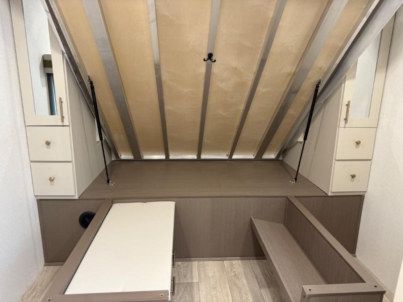 Each Alta travel trailer or toy hauler by EAST TO WEST is constructed with a 5" vacuum bonded roof, an enclosed and heated underbelly, and diamond plate front rock guard for added protection. Outside, you'll find marine-grade exterior speakers, a universal docking station, and back-up camera prep that can be added to make maneuvering in and out of campgrounds easier than ever. Inside, there are 4k interior LED lights, solid pressed membrane countertops, black roller shades, and many more interior comforts you are sure to love.