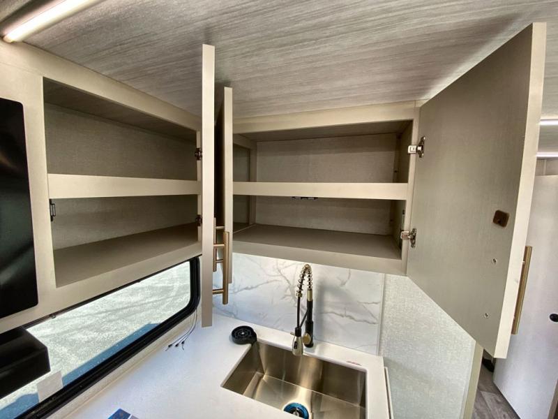 Each Alta travel trailer or toy hauler by EAST TO WEST is constructed with a 5" vacuum bonded roof, an enclosed and heated underbelly, and diamond plate front rock guard for added protection. Outside, you'll find marine-grade exterior speakers, a universal docking station, and back-up camera prep that can be added to make maneuvering in and out of campgrounds easier than ever. Inside, there are 4k interior LED lights, solid pressed membrane countertops, black roller shades, and many more interior comforts you are sure to love.