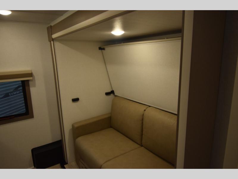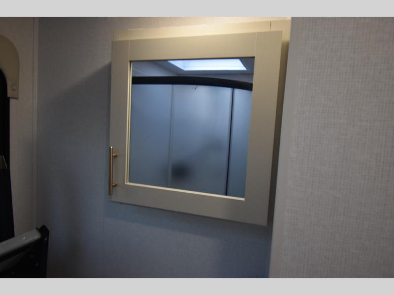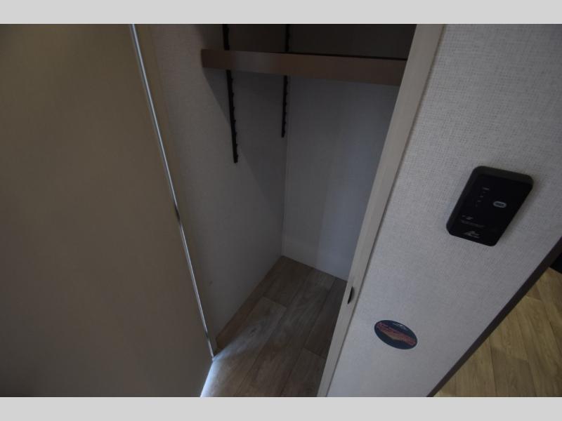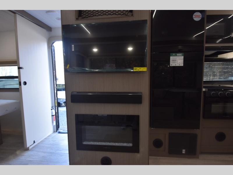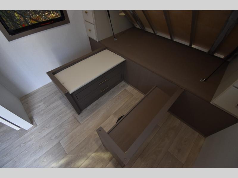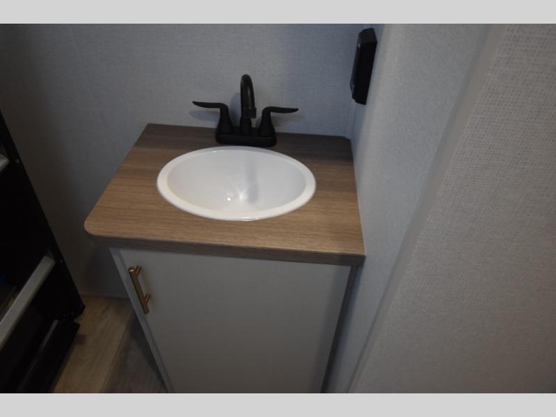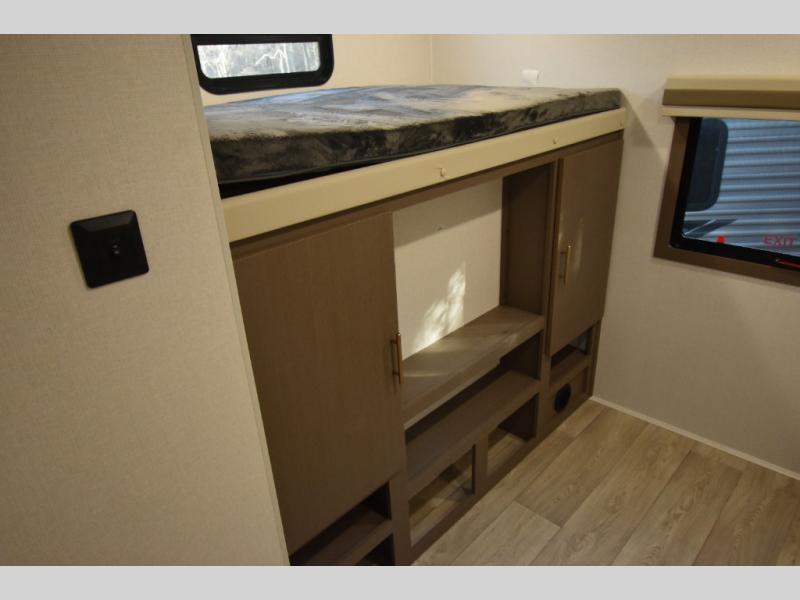 If you're looking for a travel trailer to take tailgating, this Alta model is the one! After you've unloaded the pass-through storage and set up the 21' power awning, start lunch on the outside kitchen! Since there are dual entry doors you can enter in through the main living area, or the full bath for convenience. The little ones are sure to spend most of their time in the rear bunkhouse that includes a flip-up bunk under the sofa, plus a second bunk across the room. The adults can visit at the booth dinette or on the tri-fold sofa, and check out the front private bedroom with sliding doors and a king bed for all-around comfort!
