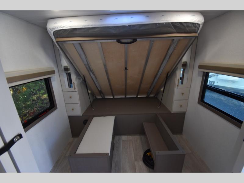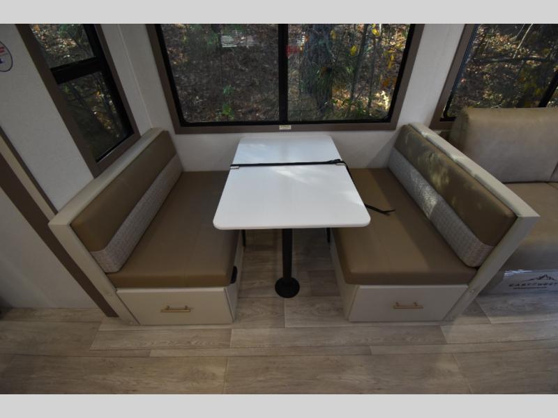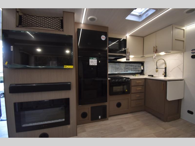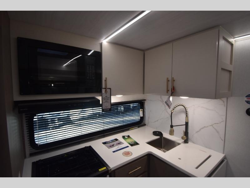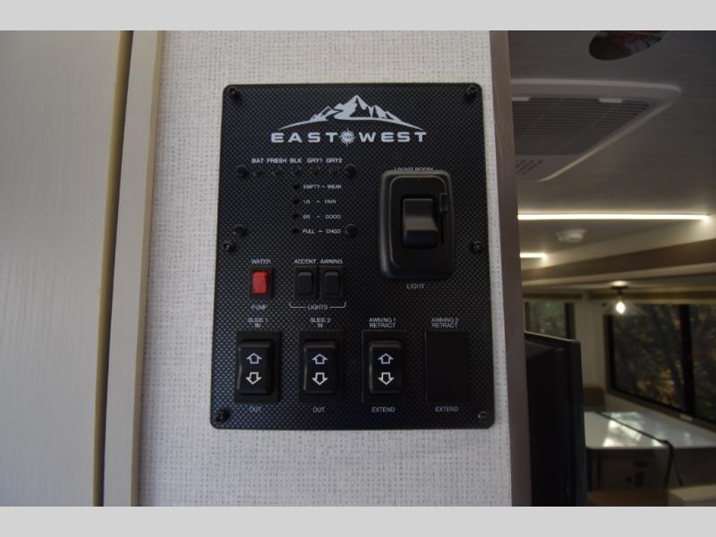 Each Alta travel trailer or toy hauler by EAST TO WEST is constructed with a 5" vacuum bonded roof, an enclosed and heated underbelly, and diamond plate front rock guard for added protection. Outside, you'll find marine-grade exterior speakers, a universal docking station, and back-up camera prep that can be added to make maneuvering in and out of campgrounds easier than ever. Inside, there are 4k interior LED lights, solid pressed membrane countertops, black roller shades, and many more interior comforts you are sure to love.