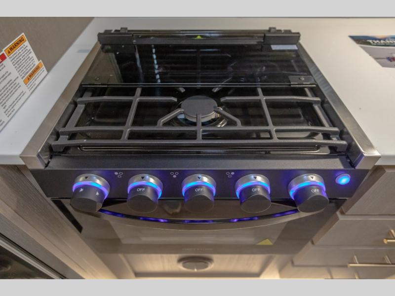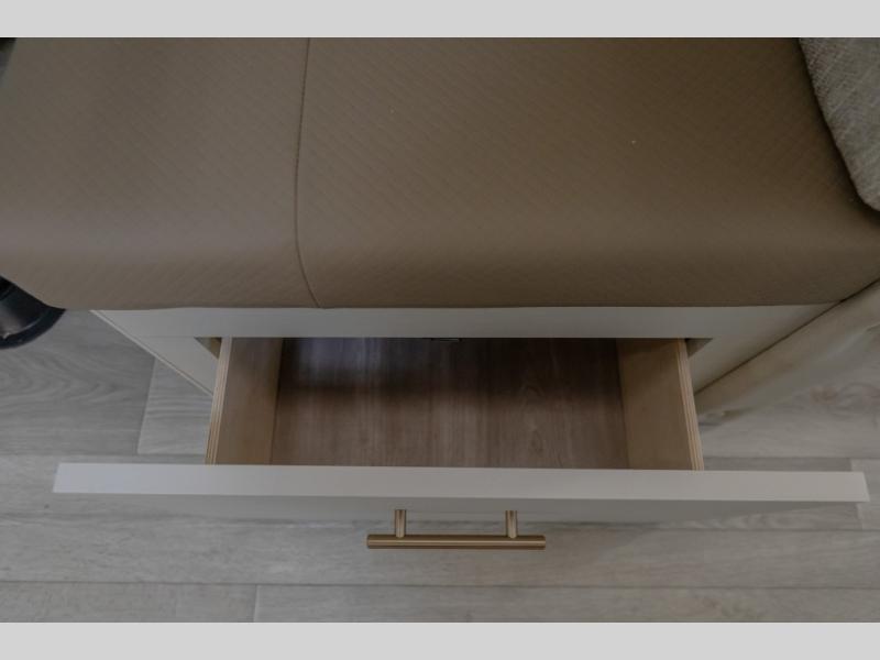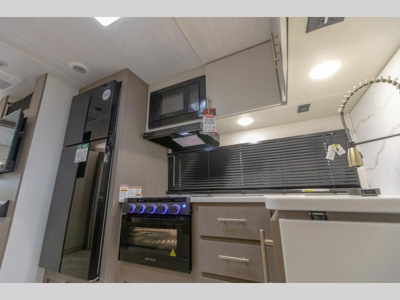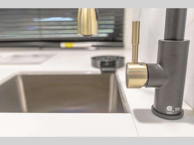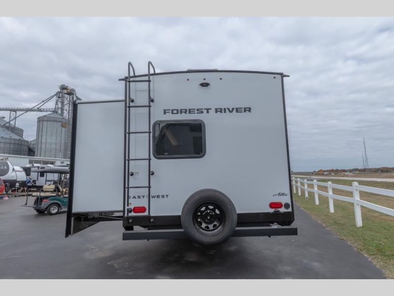 Each Alta travel trailer or toy hauler by EAST TO WEST is constructed with a 5" vacuum bonded roof, an enclosed and heated underbelly, and diamond plate front rock guard for added protection. Outside, you'll find marine-grade exterior speakers, a universal docking station, and back-up camera prep that can be added to make maneuvering in and out of campgrounds easier than ever. Inside, there are 4k interior LED lights, solid pressed membrane countertops, black roller shades, and many more interior comforts you are sure to love.