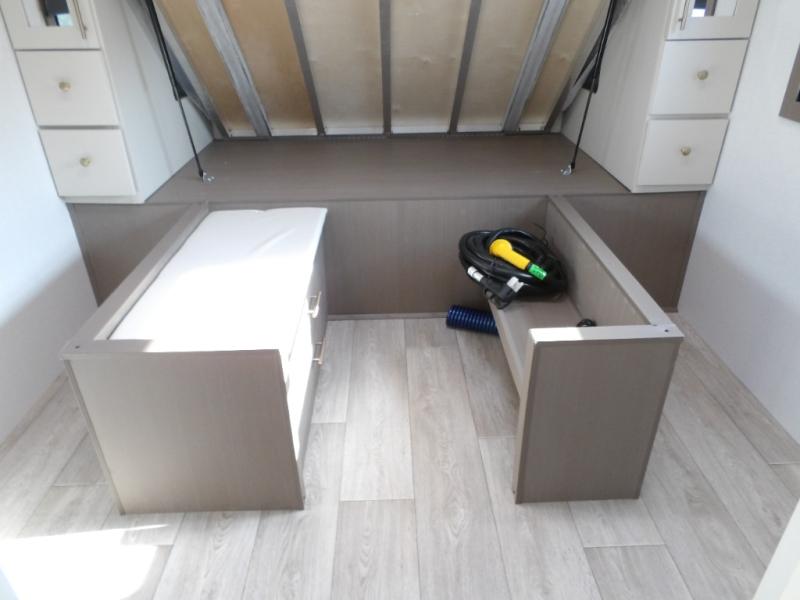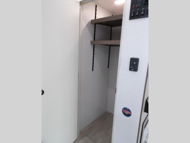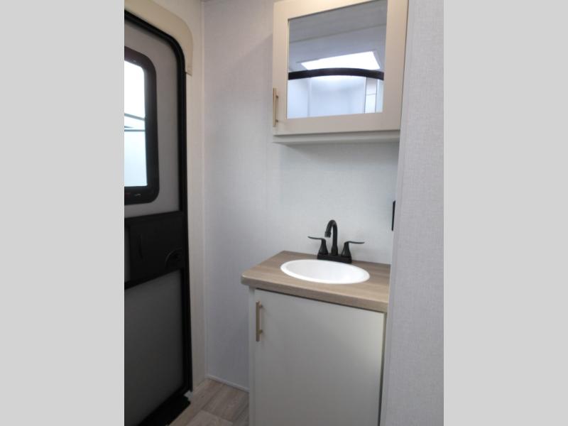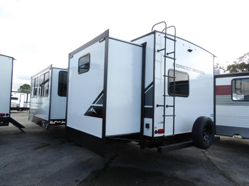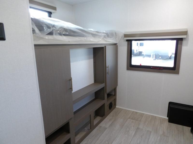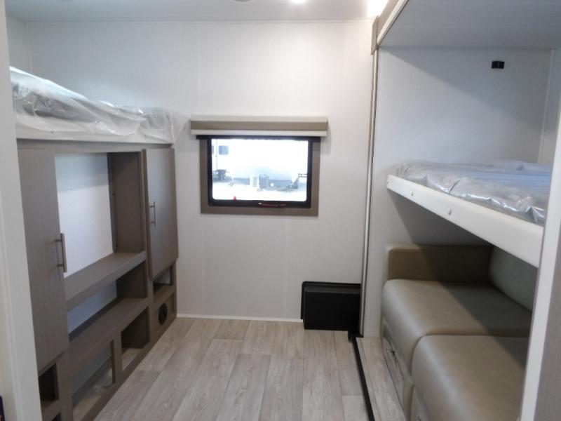 If you're looking for a travel trailer to take tailgating, this Alta model is the one! After you've unloaded the pass-through storage and set up the 21' power awning, start lunch on the outside kitchen! Since there are dual entry doors you can enter in through the main living area, or the full bath for convenience. The little ones are sure to spend most of their time in the rear bunkhouse that includes a flip-up bunk under the sofa, plus a second bunk across the room. The adults can visit at the booth dinette or on the tri-fold sofa, and check out the front private bedroom with sliding doors and a king bed for all-around comfort!