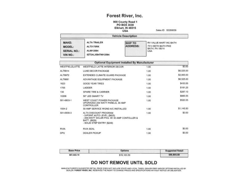 EAST TO WEST Alta travel trailer 3175RK highlights:
